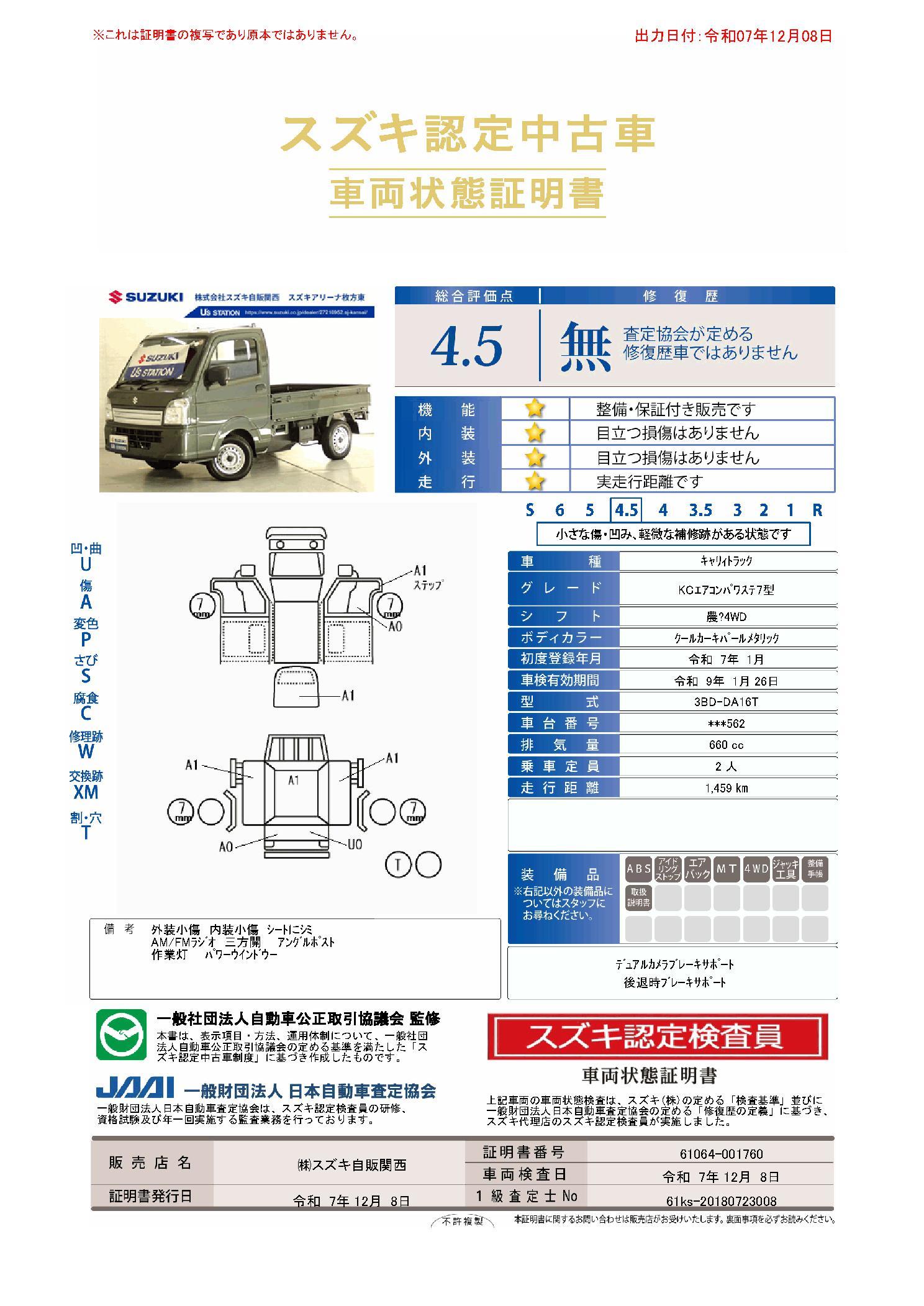 | 保証について | [保証付]:2028(令和10)年1月まで・60000km ※いずれか早い時期が保証適用の条件となります。 |