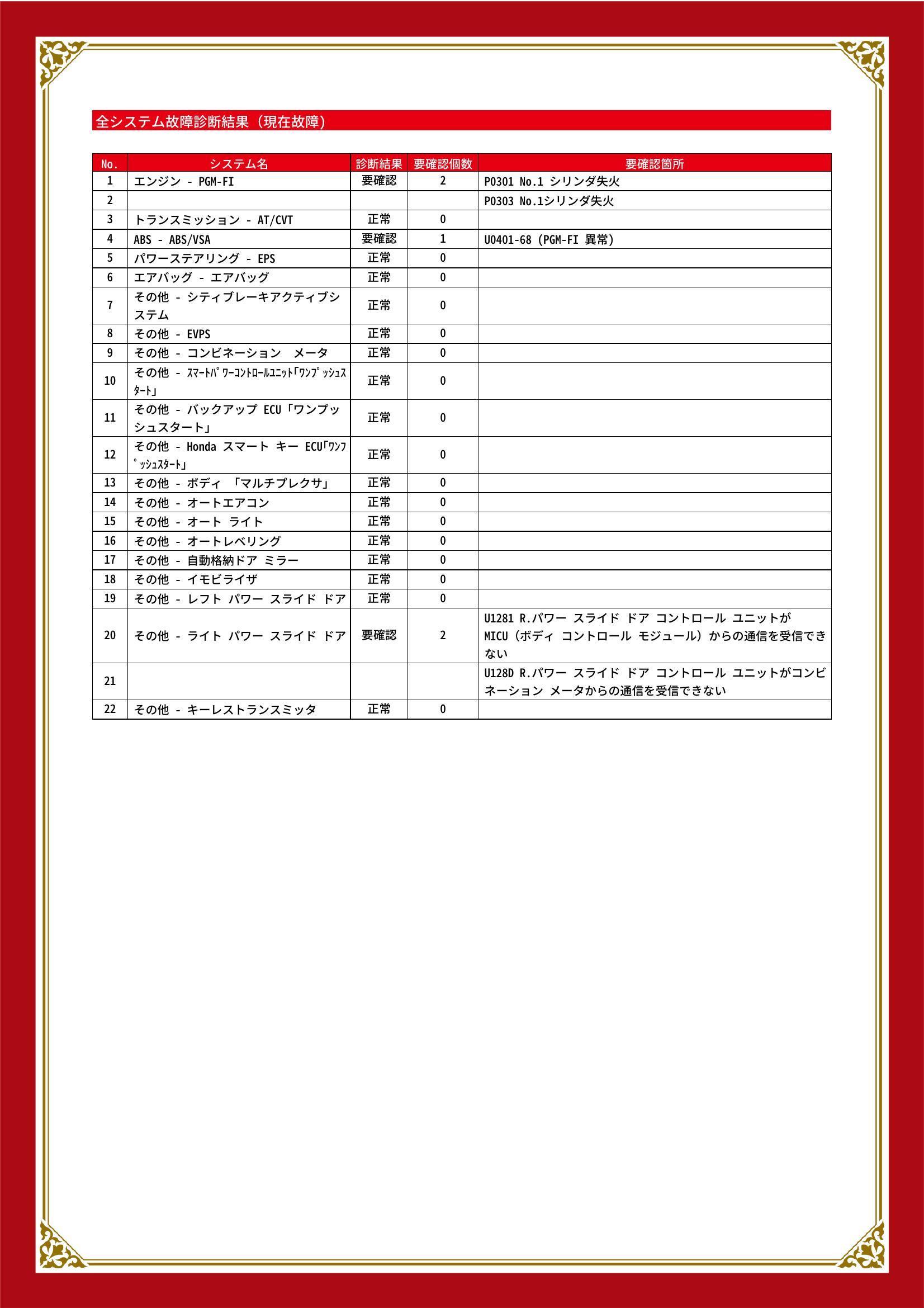 [保証付]:1ヶ月・1000km ※いずれか早い時期が保証適用の条件となります。 業界高水準、最長保証期間はなんと15年。保証項目406部位。任意による1年毎の更新が可能な新しいアフターサービス「GOOD SPEEDオリジナル プレミアムワランティー」をご用意させて頂いております。 |