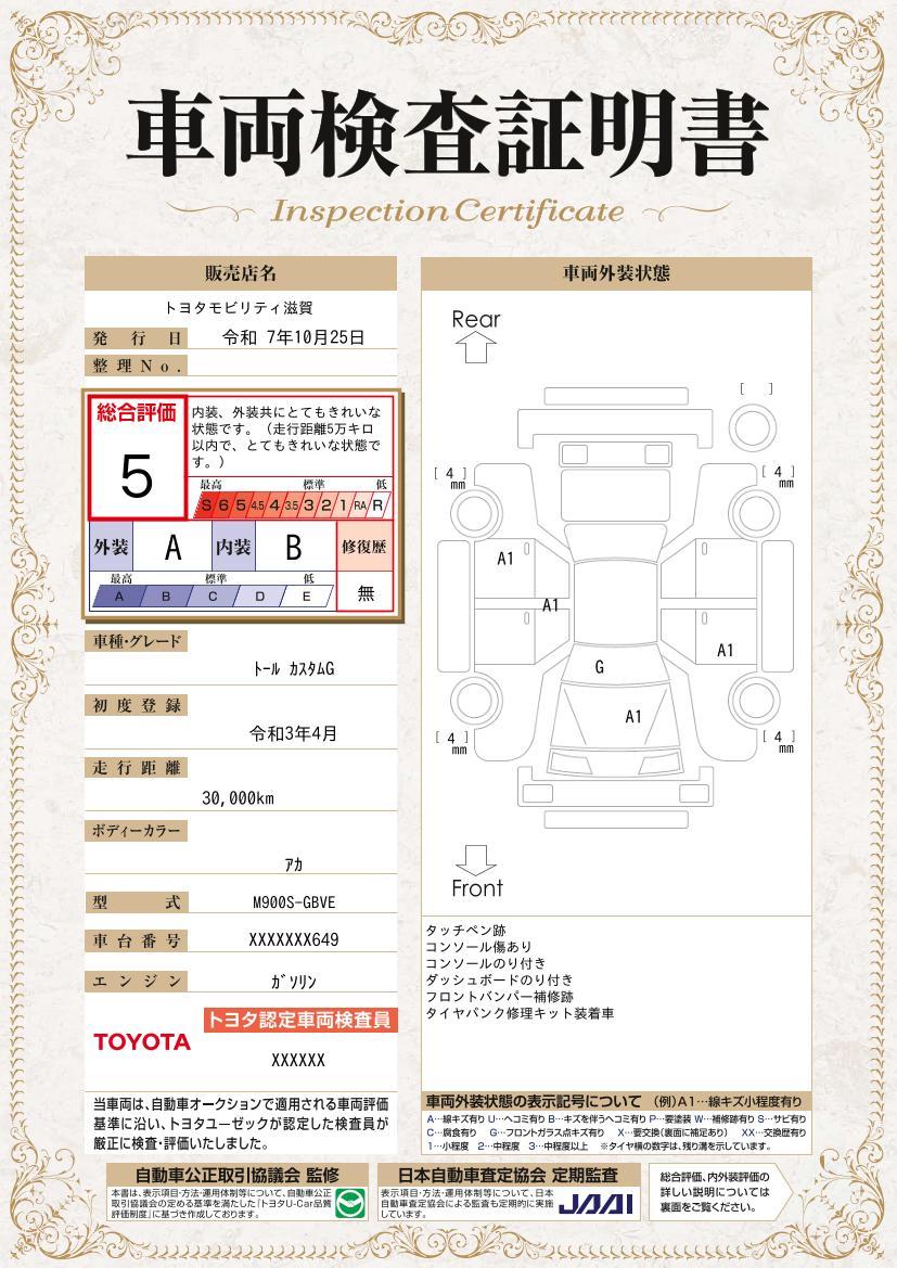 車のキズや修復歴などを一目でわかりやすく表示しております。安心して車選びを楽しんでいただくための証明書です。