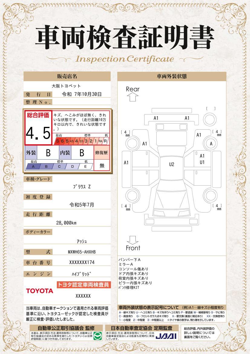 プリウス Z インテリジェントクリアランスソナー PWシート ムーンルーフ 0707045A20251105T002 10