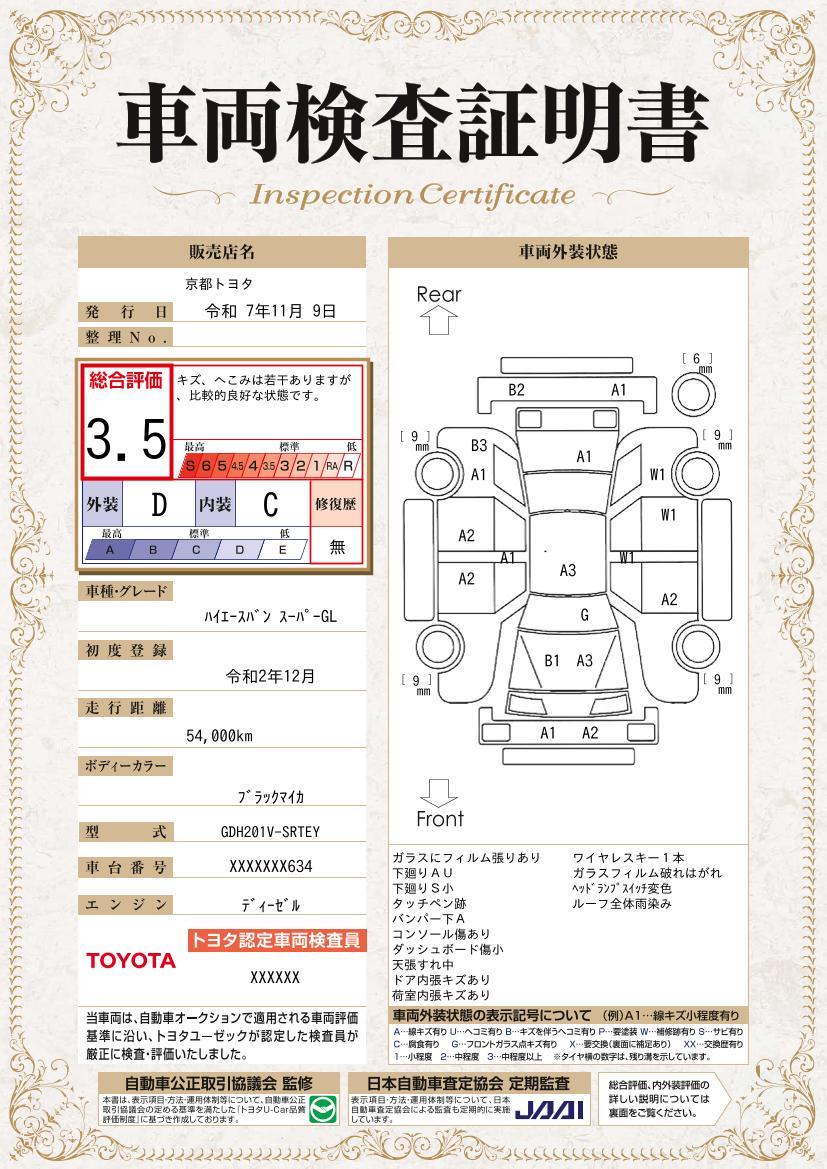 京都トヨタの中古車は、自動車公正取引協議会の定める基準を満たした「トヨタU−Car品質評価制度」に基づき作成した証明書をWEBで開示しておりますので、安心です。