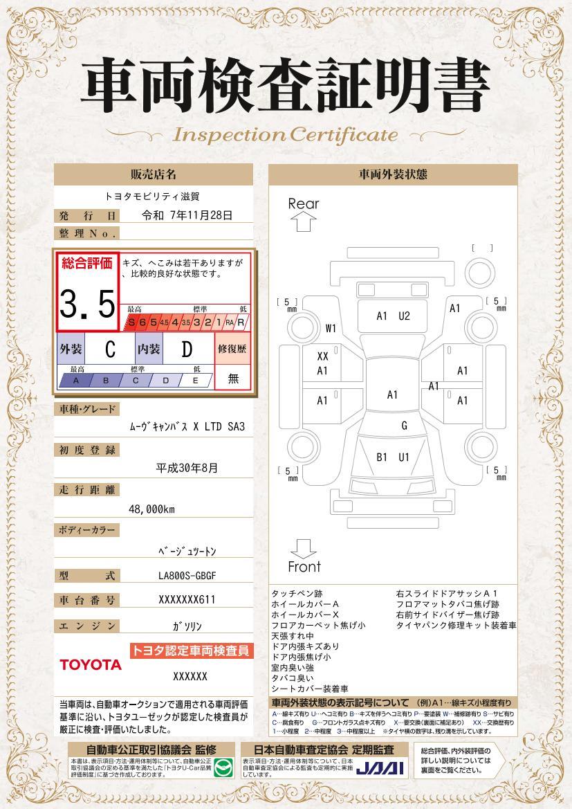 車のキズや修復歴などを一目でわかりやすく表示しております。安心して車選びを楽しんでいただくための証明書です。