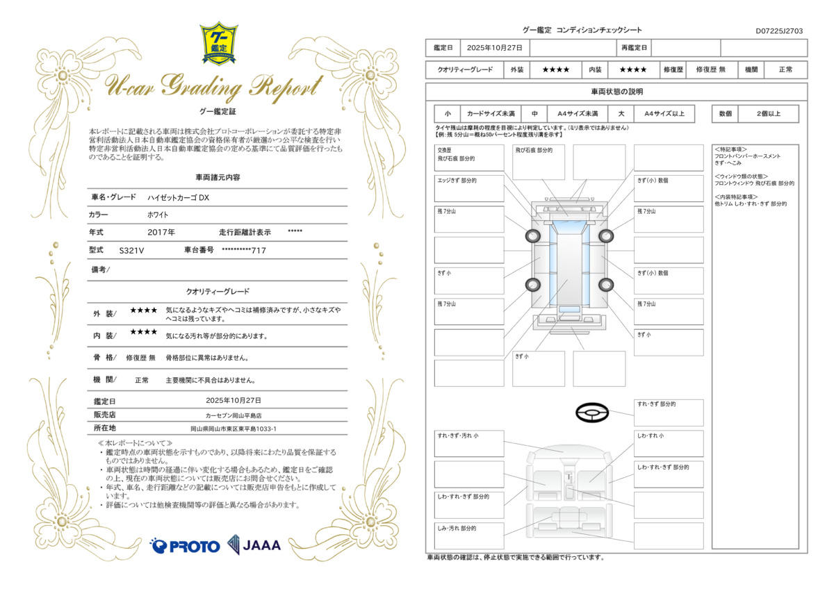 当店の車輌は「全車」第3者機関(日本自動車鑑定協会)による、グー鑑定を実施しています!外装、内装の状態から、機関、修復歴に至るまで細かくチェックを行い公表しています。中古車だからこそよりご安心いただくため導入しています。少しでも心配な点があればお気軽にお問い合わせください♪