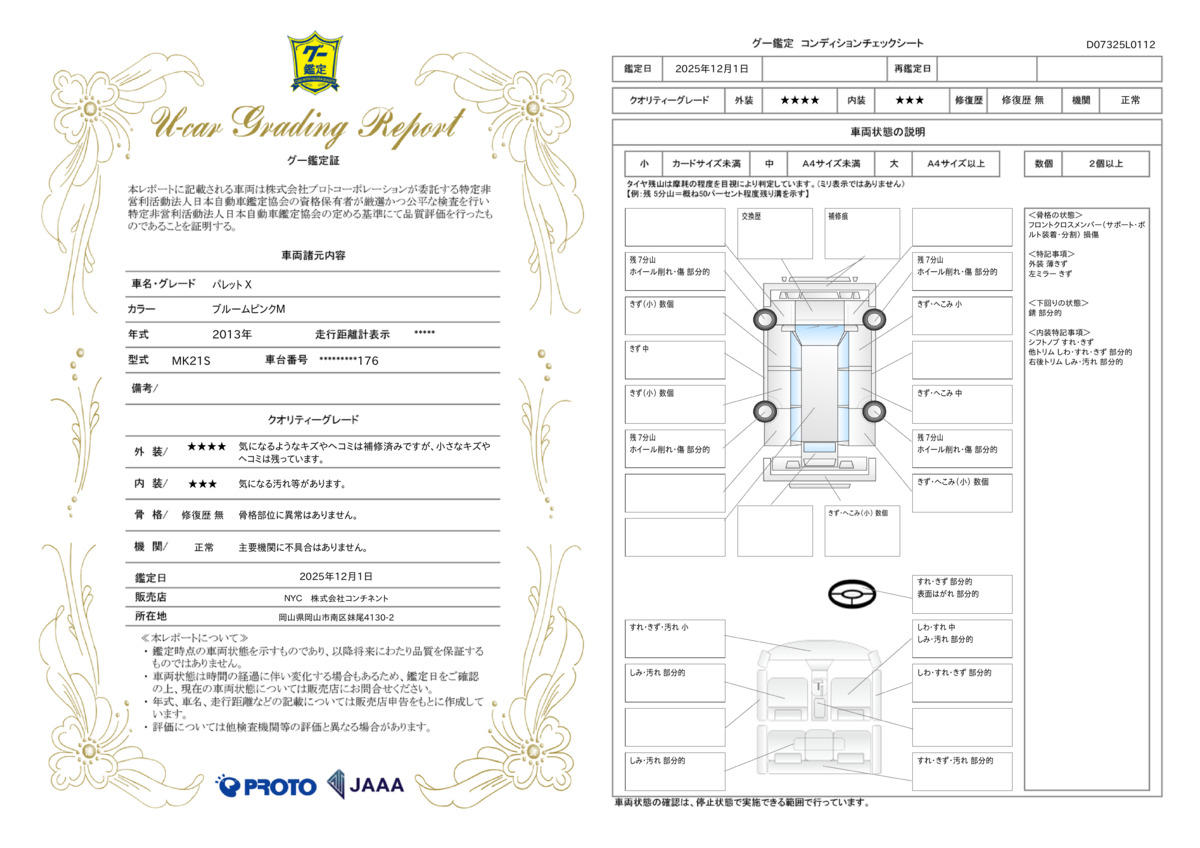 [保証付]:6ヶ月・走行無制限 エンジン・ミッション・エアコン関係など250項目以上の部品を対象!新車保証を基準にご対応させて頂きますので、自社保証であっても安心!もちろん、追加料金、免責金、免責期間無し、期間中、走行距離は無制限! |