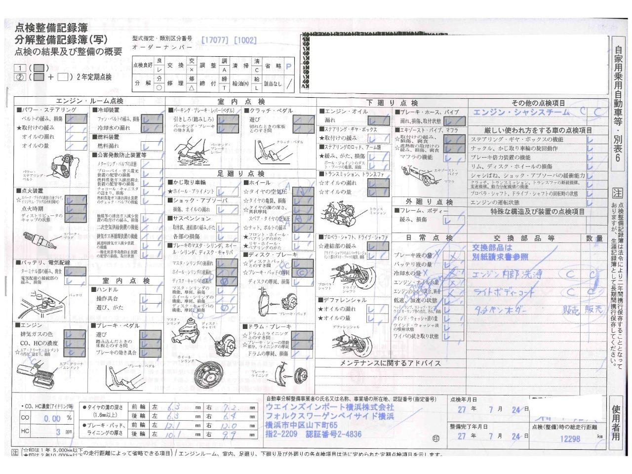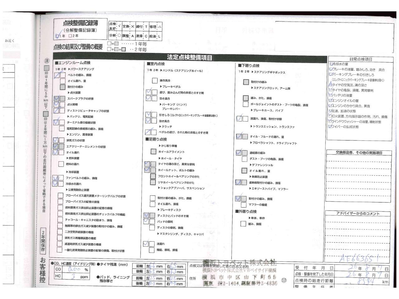 エンジンオイル・エンジンオイルフィルター・バッテリー・ブレーキフルード・エアコンフィルター・フロントワイパーゴム・クーラントブースター・エアフィルター・エンジンインジェクタークリーナーを新品交換!!! |