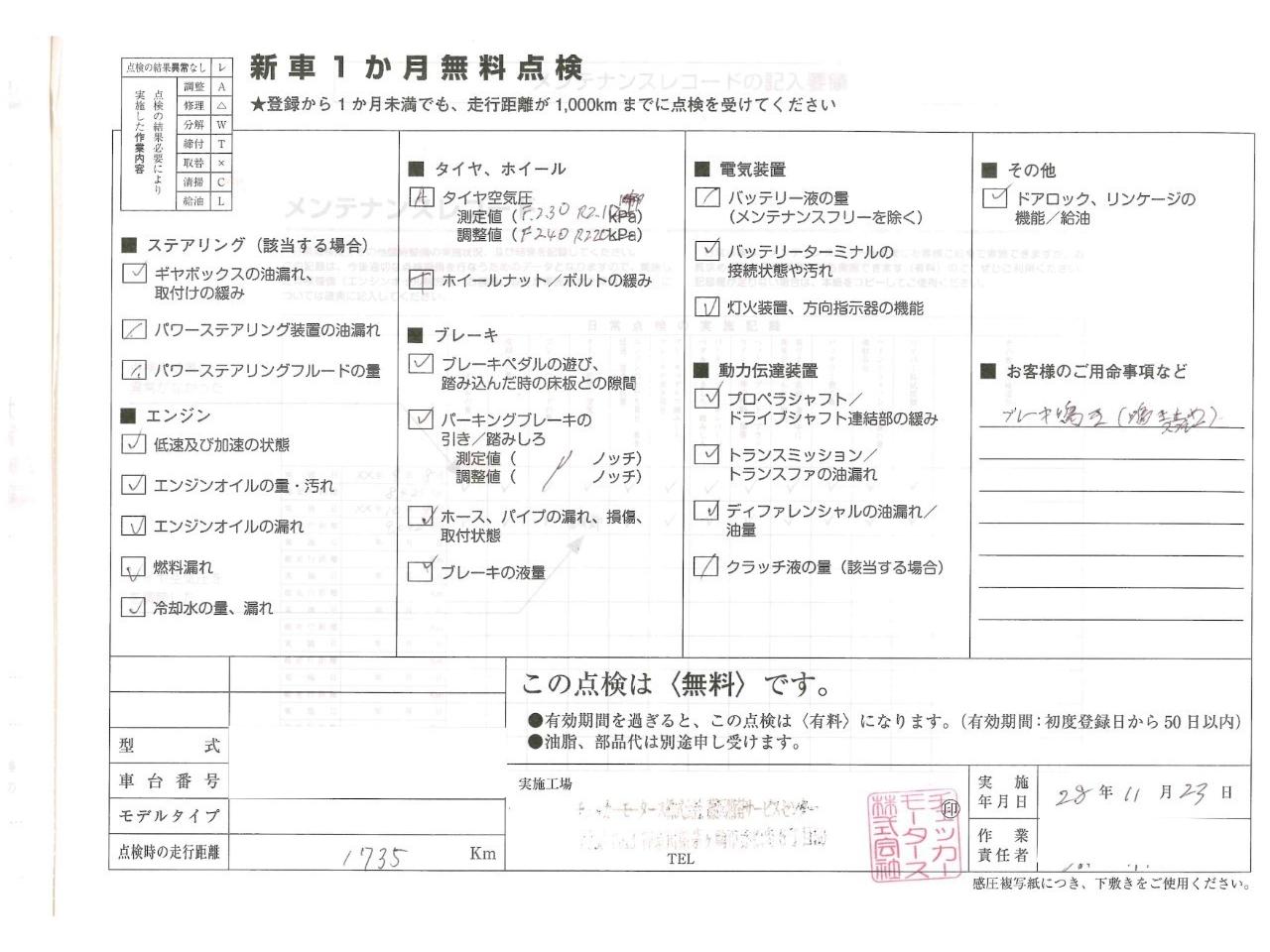• 点検整備記録簿あり