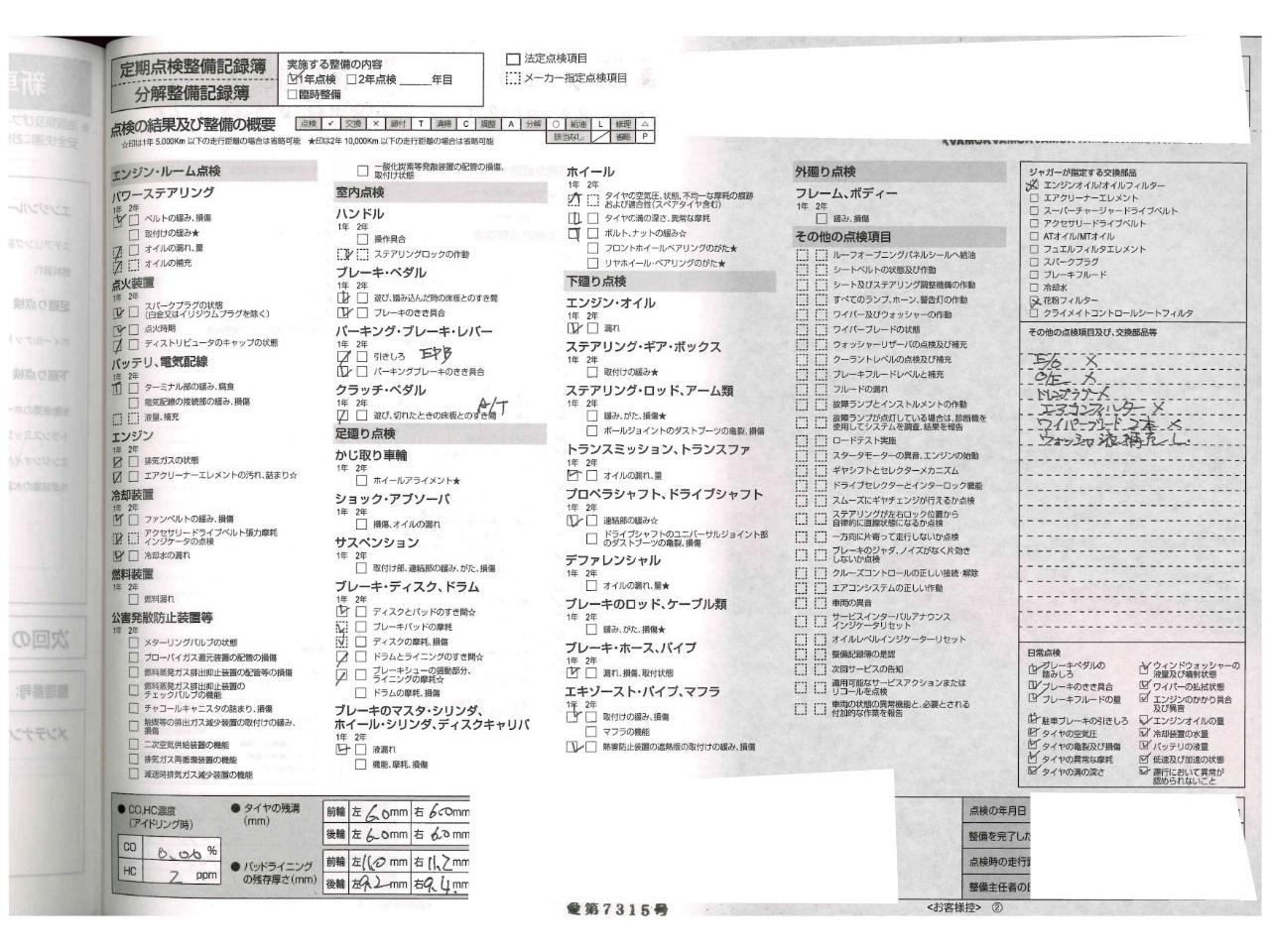 | エンジンオイル・エンジンオイルフィルター・バッテリー・ブレーキフルード・エアコンフィルター・フロントワイパーゴム・クーラントブースター・エアフィルター・エンジンインジェクタークリーナーを新品交換!!! |