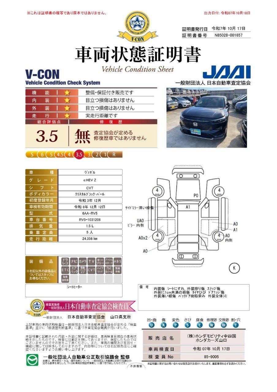 ヴェゼル e:HEVZ LED フルセグ メモリナビ 1002790A30251025W001 1