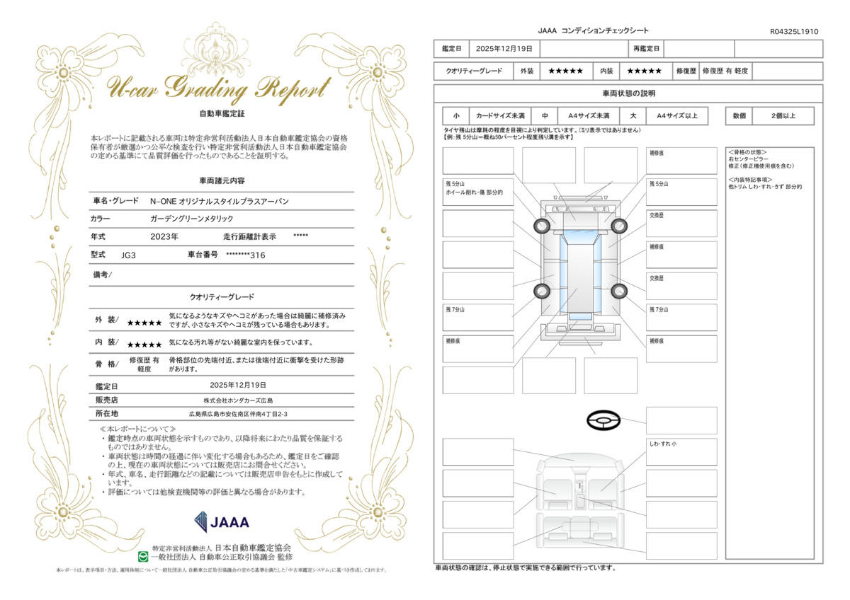 中古車って壊れたり、修理代がいくらかかるか不安ですよね。その点ホンダカーズ広島では無料で1年間、走行キロ無制限の保証が付帯しています(本体価格税込40万円以上の商品が対象となります。)
