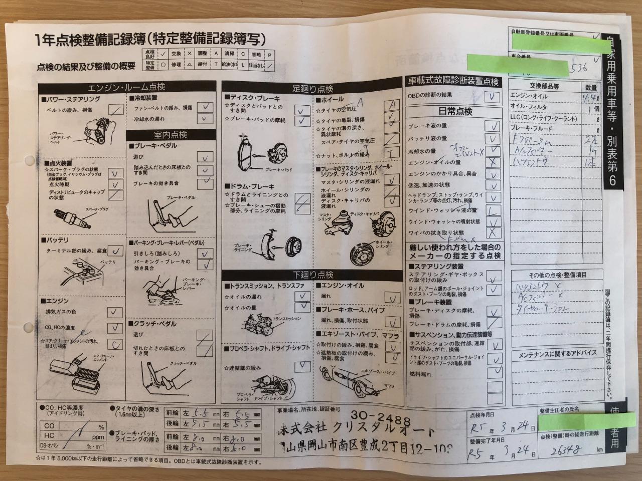 自社で納車前整備をおこないます。各箇所の点検、消耗部品の交換等を行います。その後、最終確認を行ない、お引渡準備をおこないます。