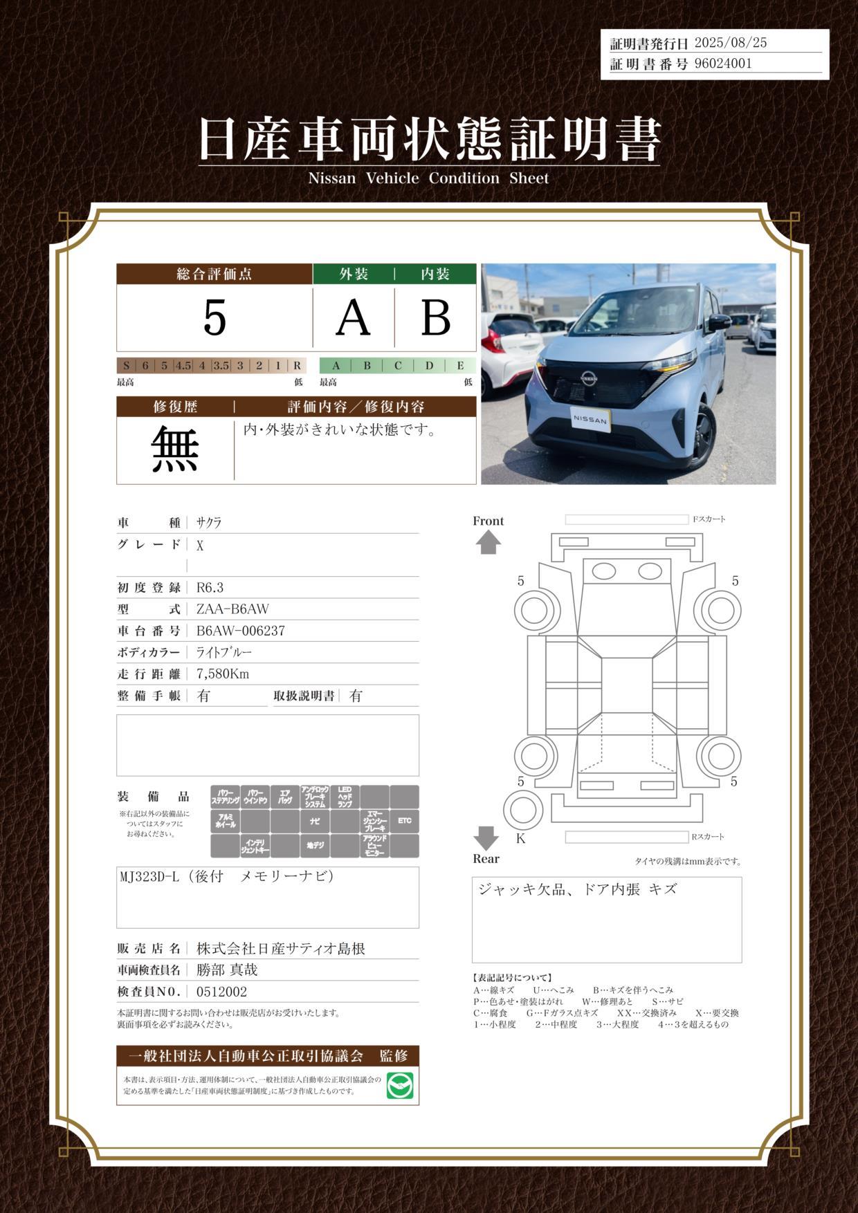 最大95項目の納車前点検を施し、全車無料保証付き!全国の日産サービス工場で修理可能で、1年間走行距離無制限、1ヶ月点検も無料で受けていただけます。詳細はお気軽にお問合せ下さい。