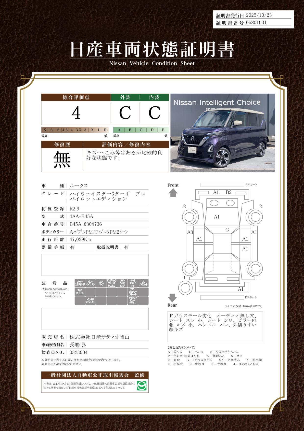 納車前に徹底的に点検、整備を行いますが、納車後も無料点検をさせていただきます!万全に万全を期すために納車1か月経過後に無料点検をさせていただきます!お客様に安心してお乗りいただくために実施します!