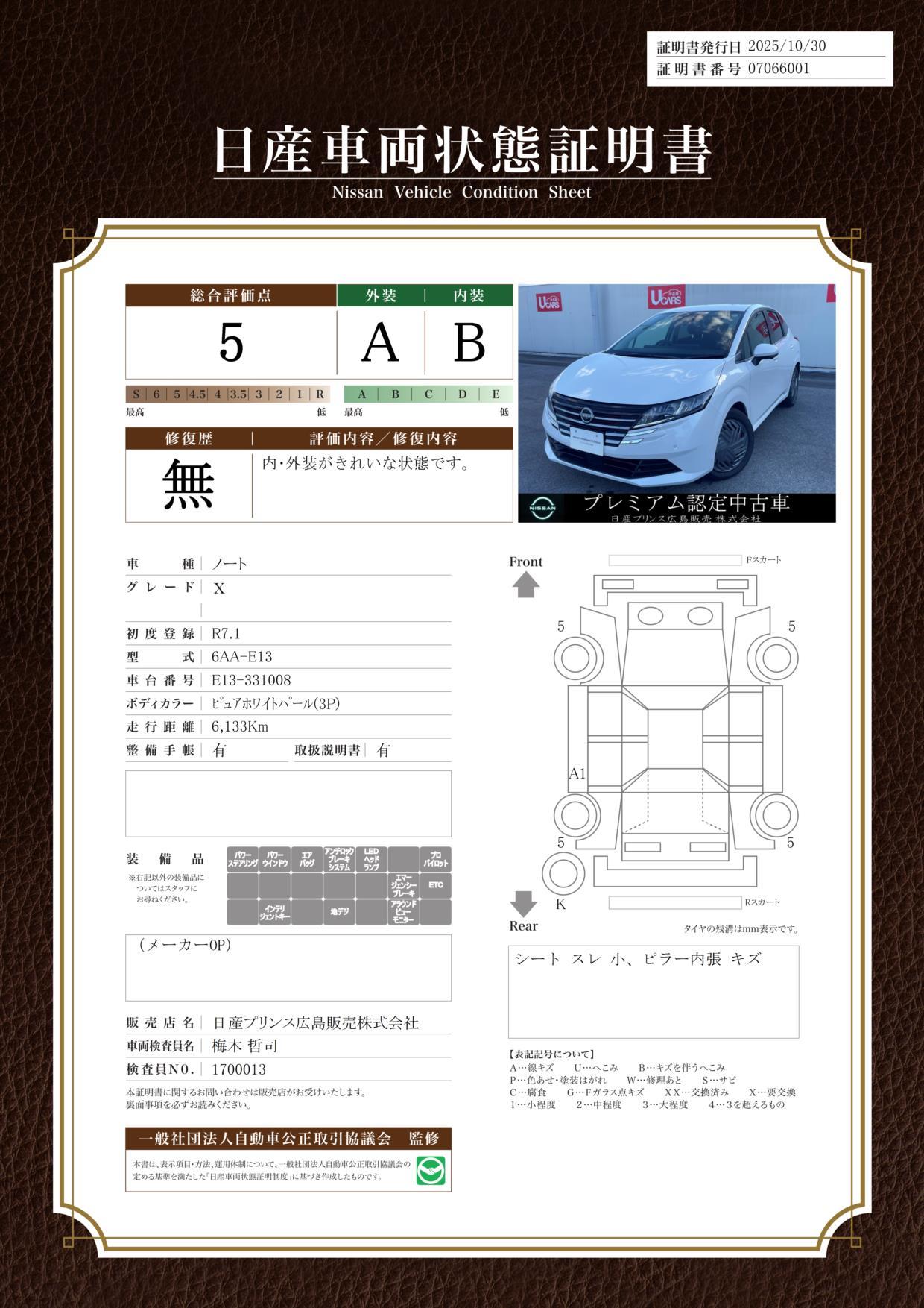修復歴 なし 車体色 パールホワイト