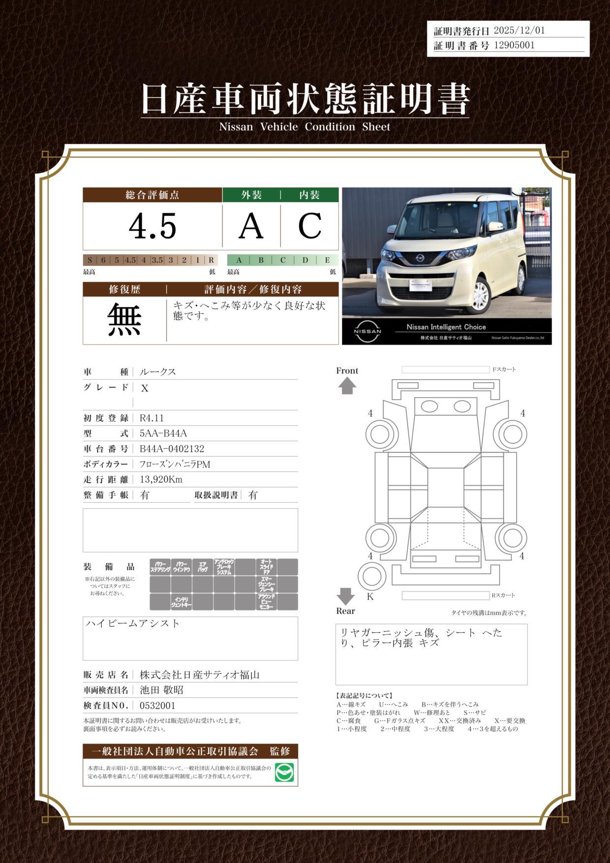 基本的に油脂類、消耗品以外が保証対象です。もちろん、室内装備やエアコン、ステレオ類も保証対象です。認定車両は12ヶ月間(走行距離無制限)です。全国日産ディーラーで対応!安心の納車後1ヶ月・1000km無料点検付きです。