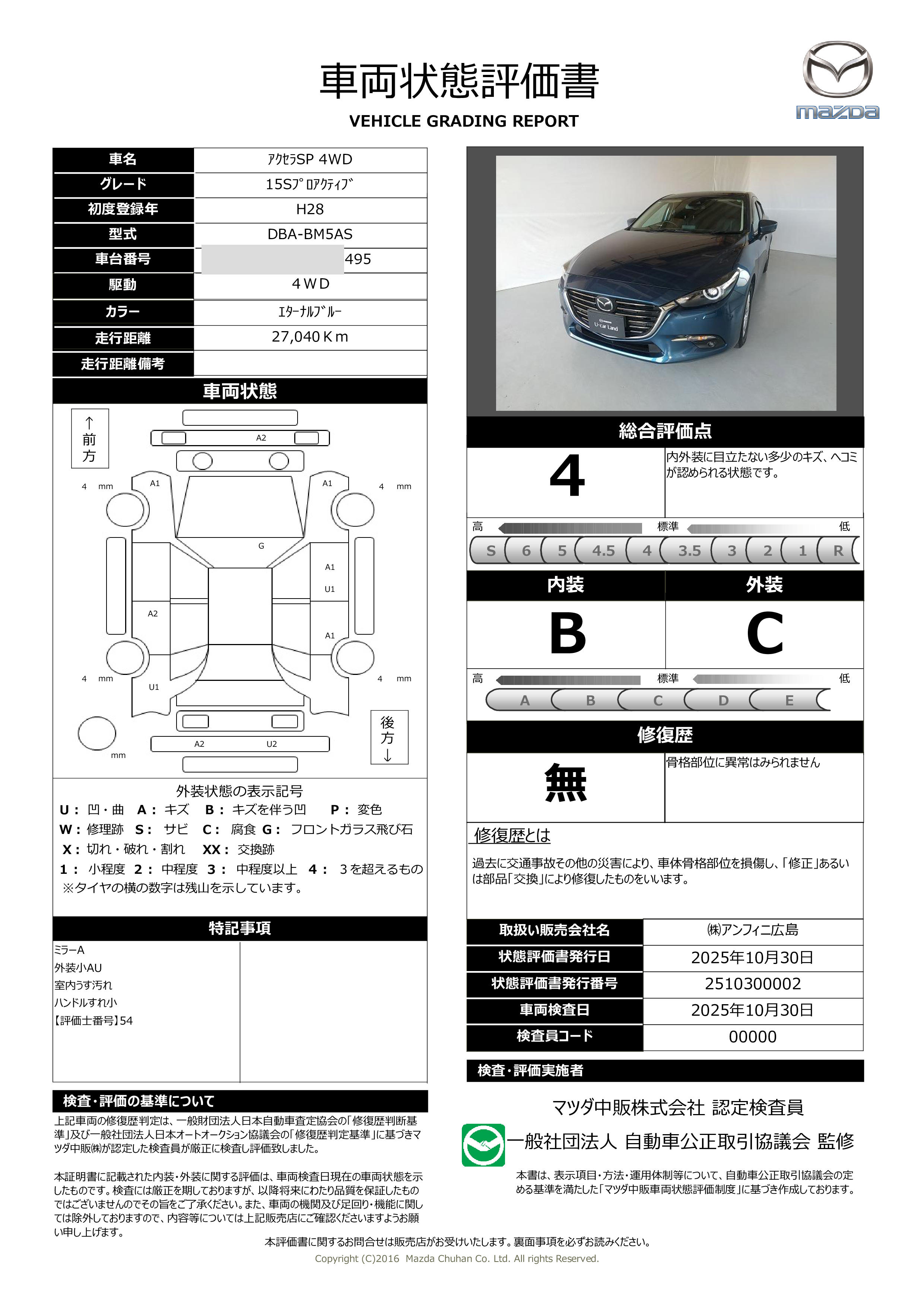 マツダのユーカーランド(中古車展示場)でご購入いただいたおクルマに、無料でついている1年間・走行距離無制限の保証サービスです。詳しくは当店スタッフまでお気軽におたずねください。