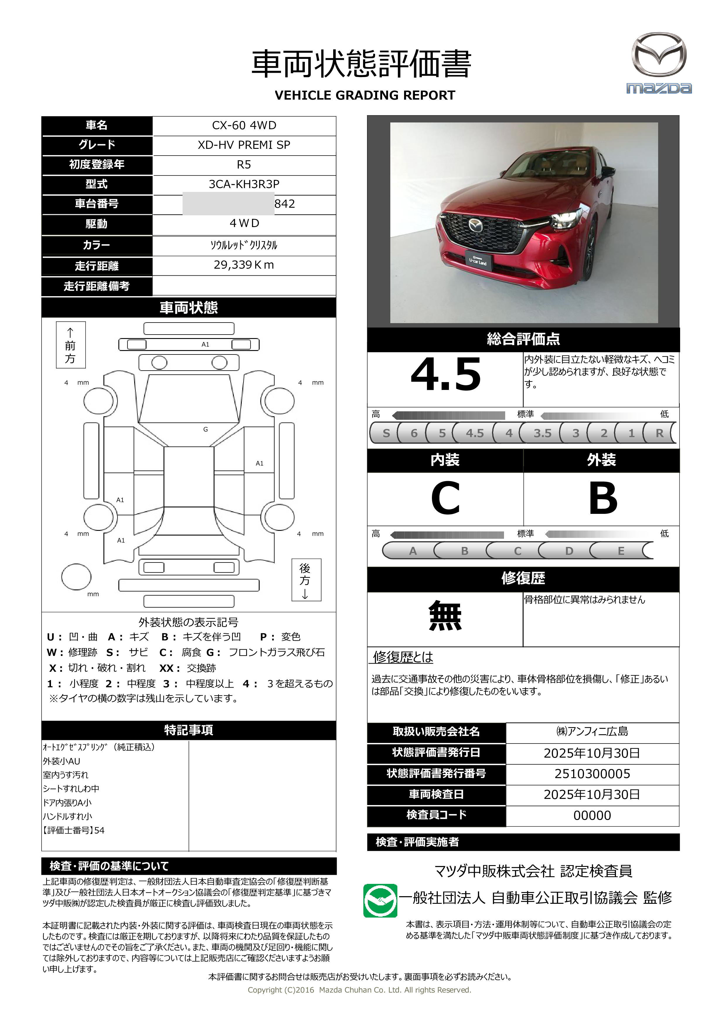 • また、修復歴・法定整備・保証の有無ならびに詳細内容につきましても、必ず各販売店にご確認いただきますようお願いいたします。