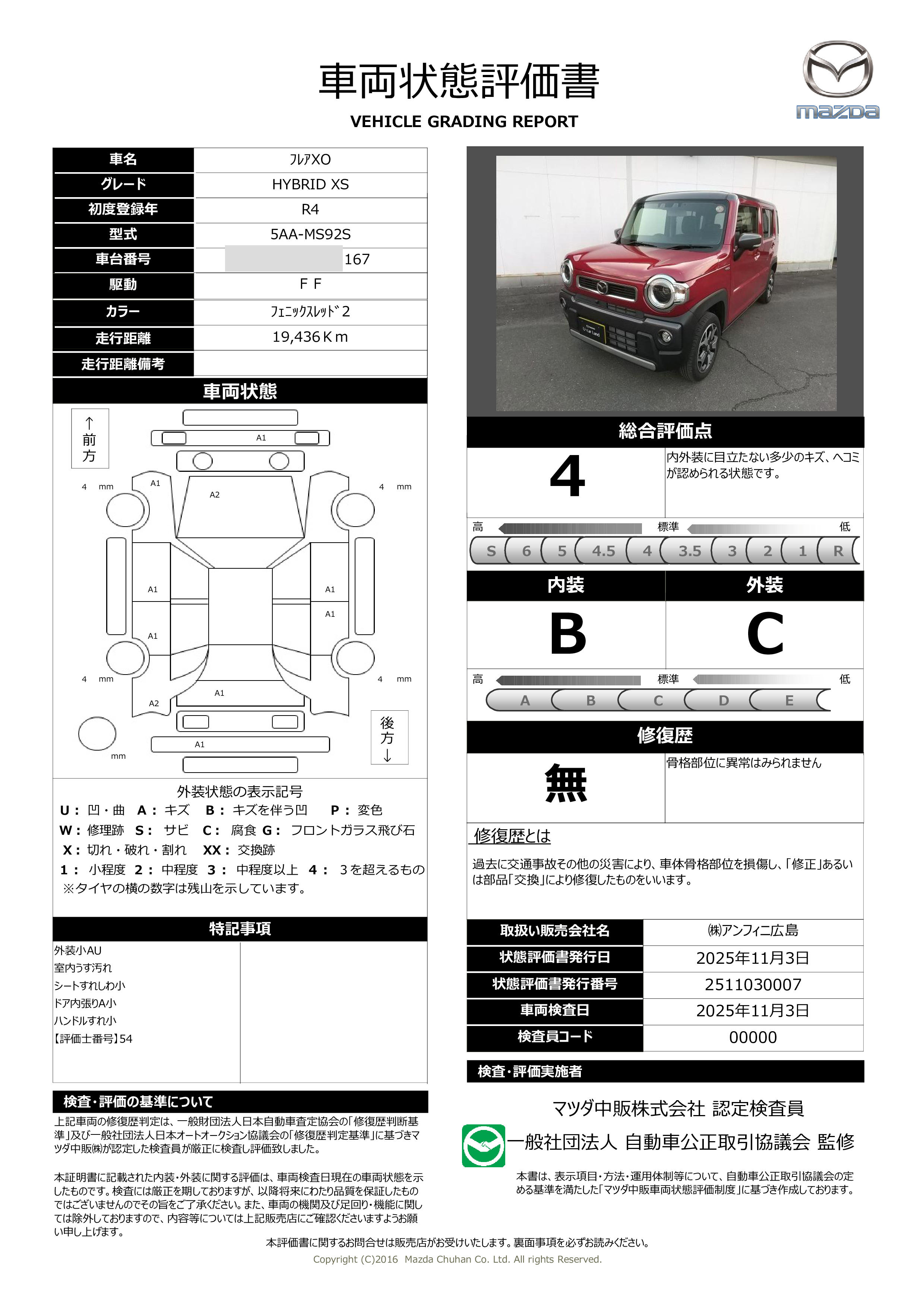 • また、修復歴・法定整備・保証の有無ならびに詳細内容につきましても、必ず各販売店にご確認いただきますようお願いいたします。