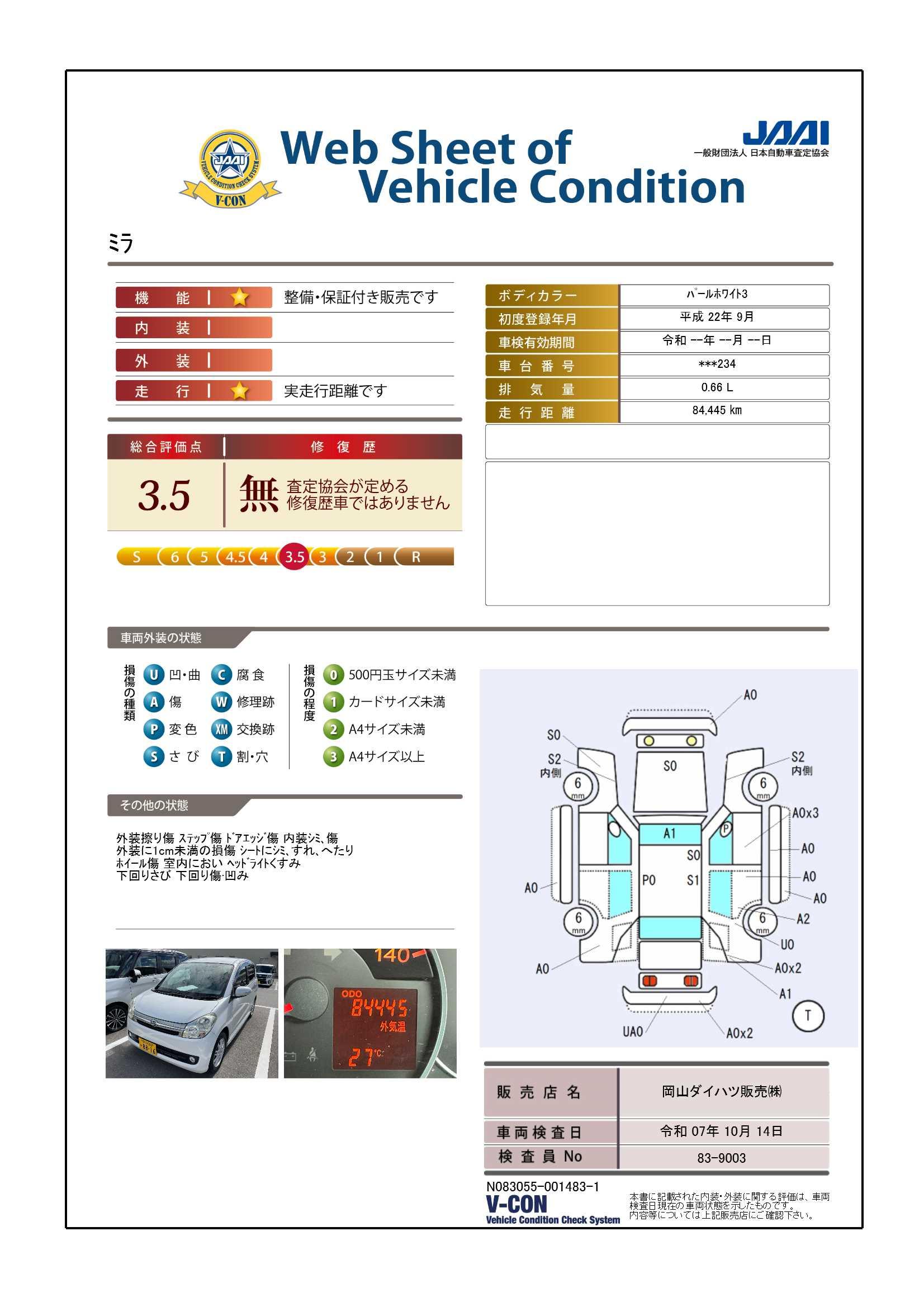 | 保証について | [保証付]:3ヶ月・3000km ※いずれか早い時期が保証適用の条件となります。 |