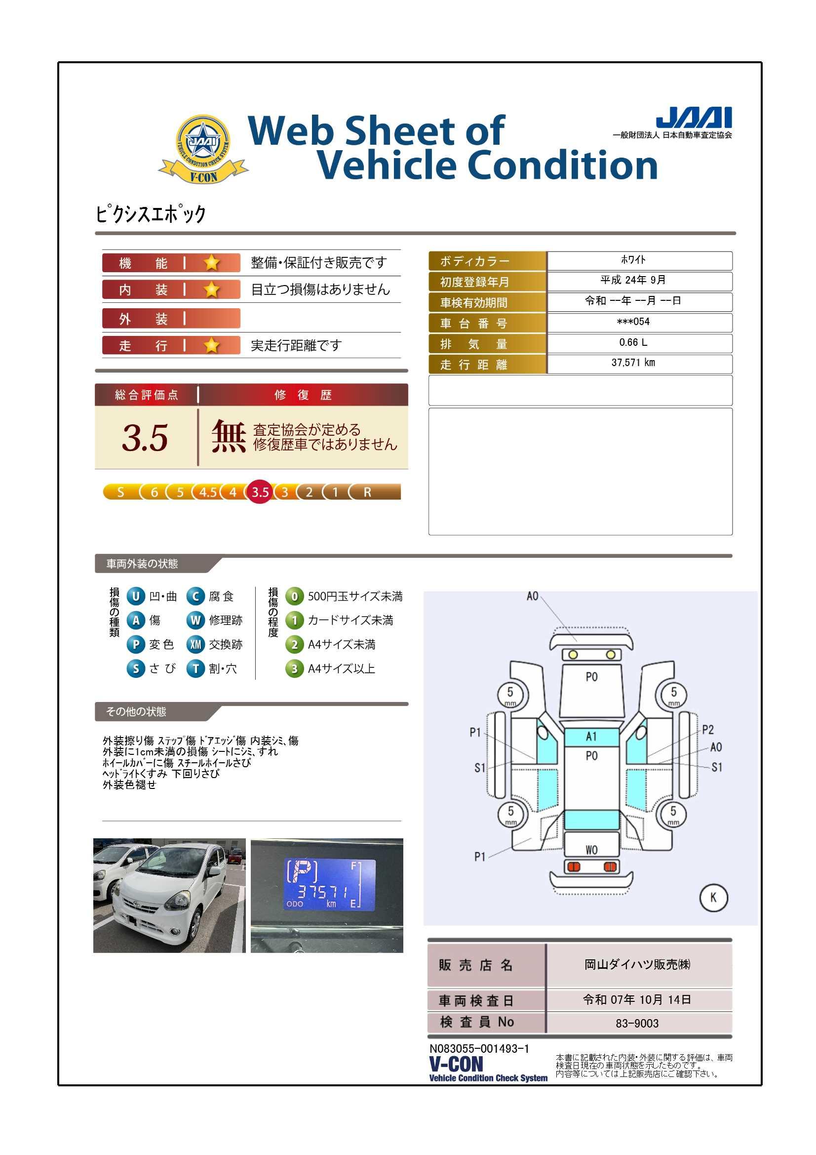 [保証付]:12ヶ月・走行無制限 有償延長保証:対象 |