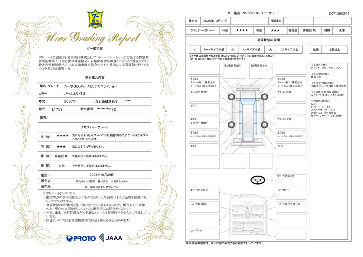 | 保証について | [保証付]:3ヶ月・3000km ※いずれか早い時期が保証適用の条件となります。 |