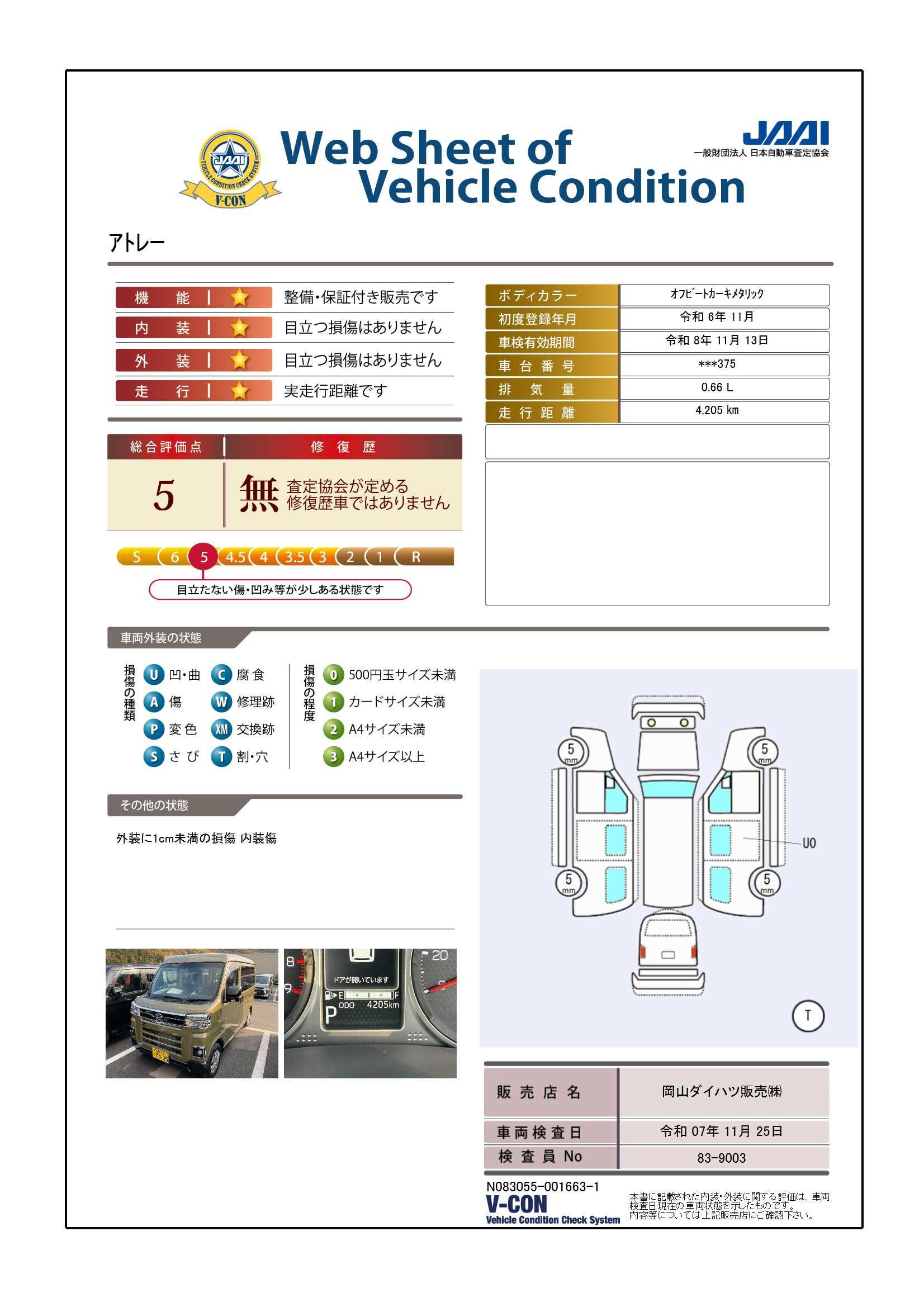| 保証修理受付先 | 岡山ダイハツのご購入店舗までご連絡ください。全国約700か所のダイハツのお店で、新車同等レベルの保証修理が受けられます。お引越し先や旅先でのトラブルにも、近くのダイハツのお店が対応いたします。 |