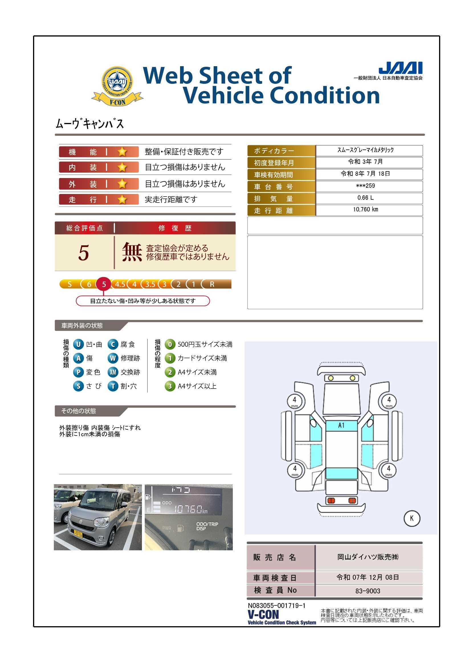 ムーヴキャンバス Xメイクアップリミテッド SA3 両側パワースライドドア オートライト 0708064A20251204D006 65