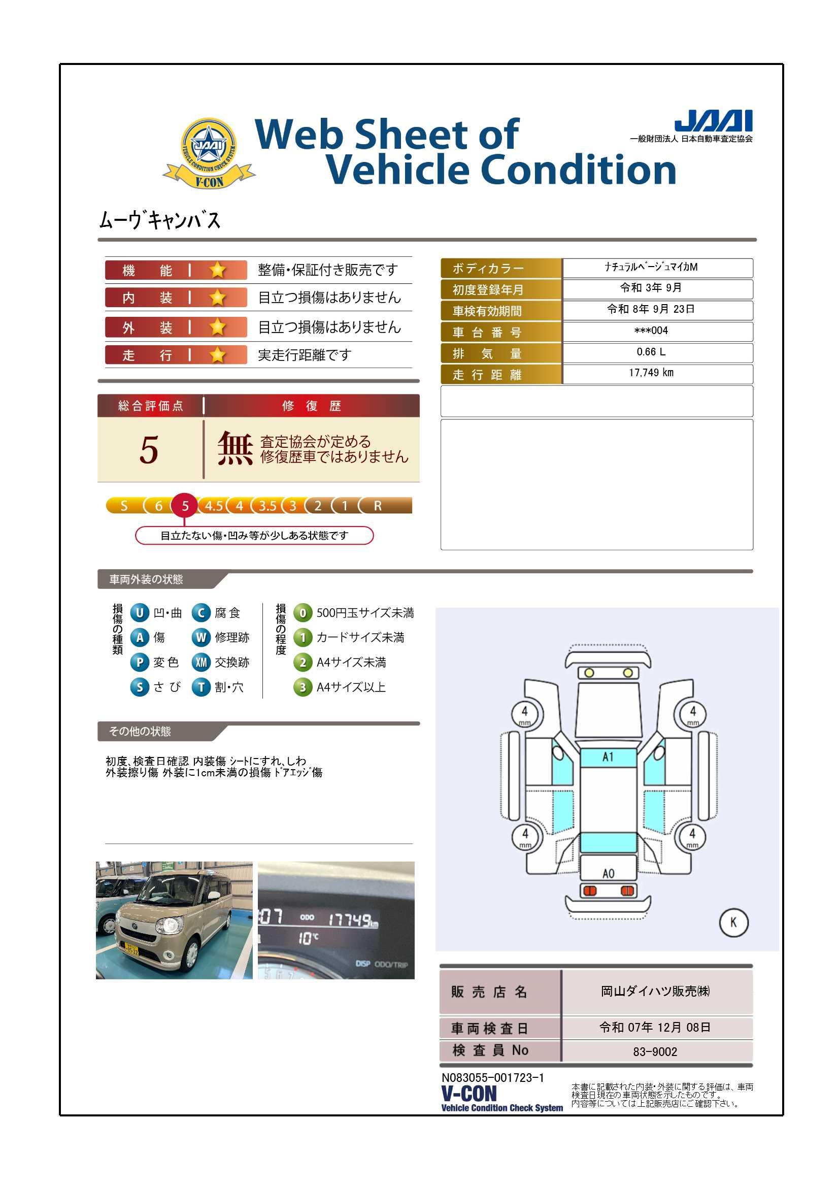 ムーヴキャンバス GホワイトアクセントVS SA3 シートヒーター 両側パワースライドドア 0708064A20251205D007 79