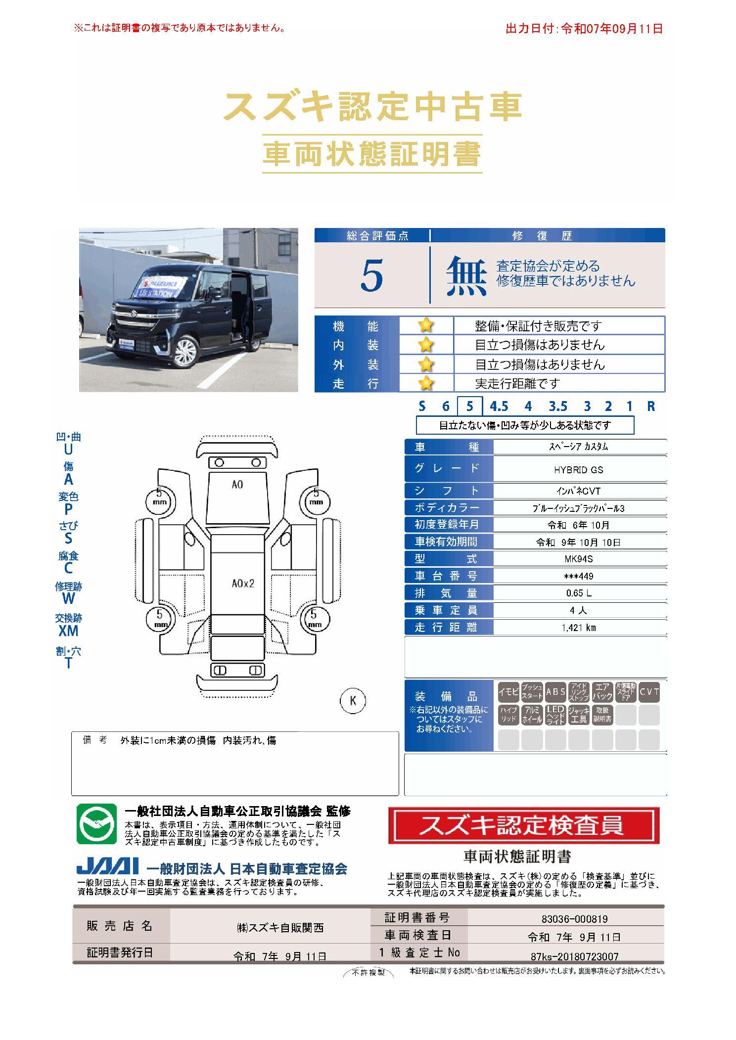 全国スズキディーラー統一保証付