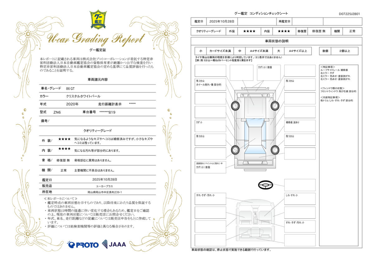 当店ではご購入後に事故車(冠水車)と判明した場合、100日以内であれば全額返金致します!自信があるからこそできるサービスです!自社でのチェックやグー鑑定での二重チェックなど厳しい基準を越えた車輌を当店では販売しております!