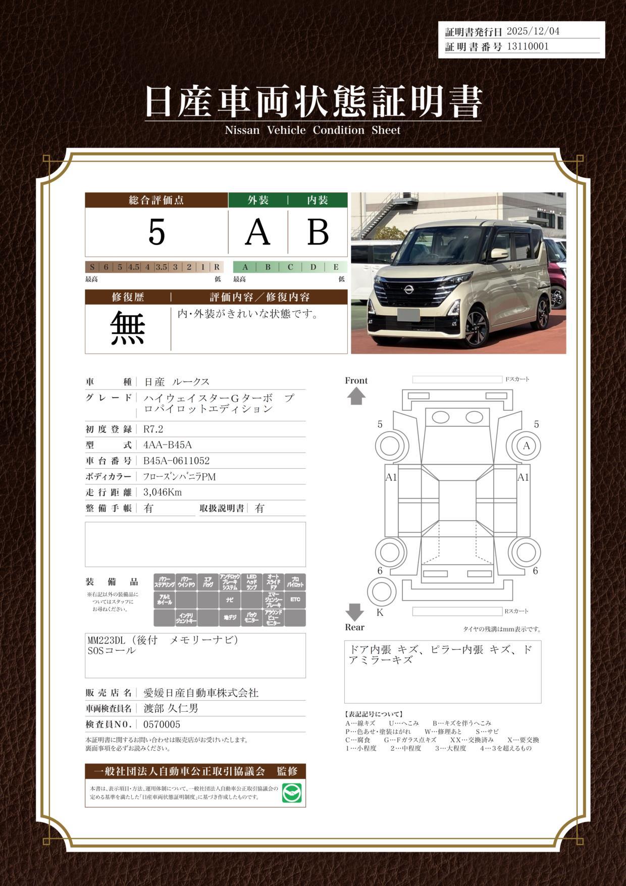 修復歴 なし 車体色 フローズンバニラパールメタリック