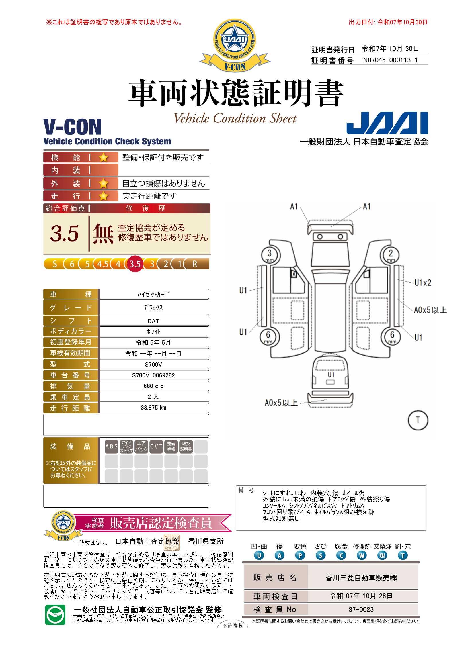 | 保証修理受付先 | ご納車後は全国の三菱ディーラーにて保証修理可能です。香川県外のお客様もご安心してご検討ください!※保証修理をお受けになる場合は当店までご連絡ください。 |