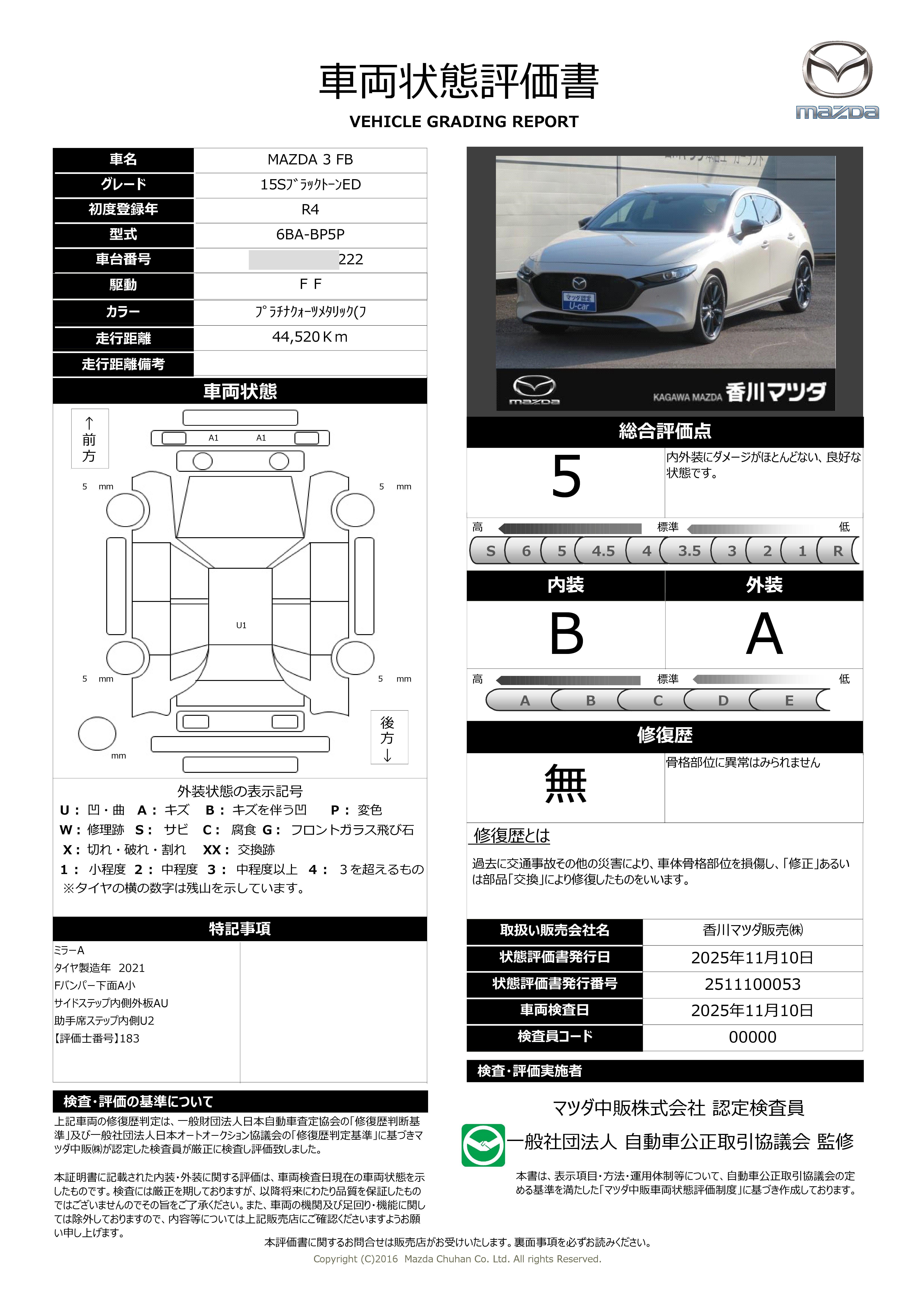 さわやか保証:マツダ製登録車は全年式で 1年 / 走行距離無制限 の保証がついております。マツダ製以外の車両・及び軽自動車におきましても初年度登録より5年以内の物件には 1年 / 走行距離無制限 の保