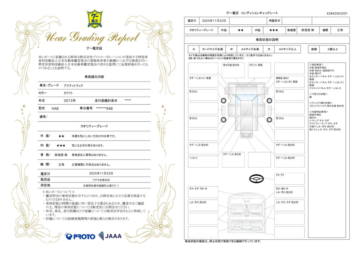 [保証付]:3ヶ月・3000km ※いずれか早い時期が保証適用の条件となります。 3ヵ月3,000km |
