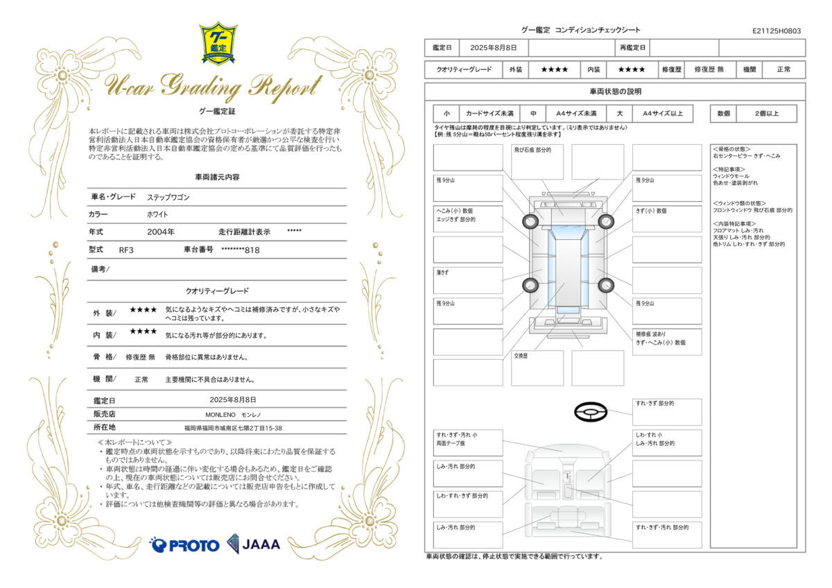 [保証付]:1ヶ月・1000km ※いずれか早い時期が保証適用の条件となります。 1ヶ月1,000km保証付き。※どちちらか早い方が適応となります。また別途延長保証もご準備しておりますので併せてそちらもお気軽にお問合せください。 |