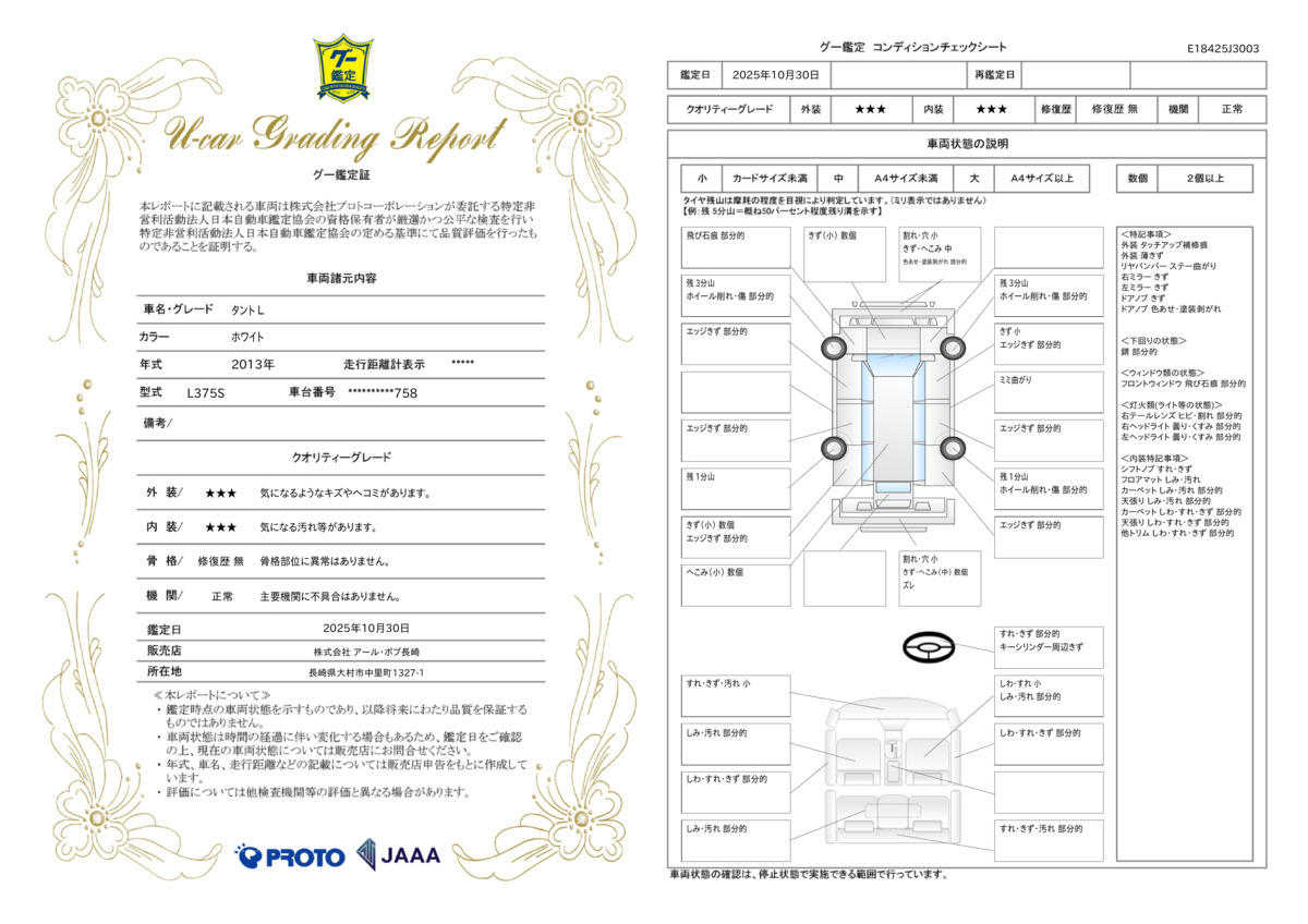 第三者機関の日本自動車鑑定協会(JAAA)の鑑定師が中古車を鑑定。プロが一台一台チェックします。外装・内装・機関・修復歴の4項目について鑑定を行っています。見た目からでは判断がつかない箇所も入念にチェックしています。安心してお車を購入して頂けるように取り組んでいます。