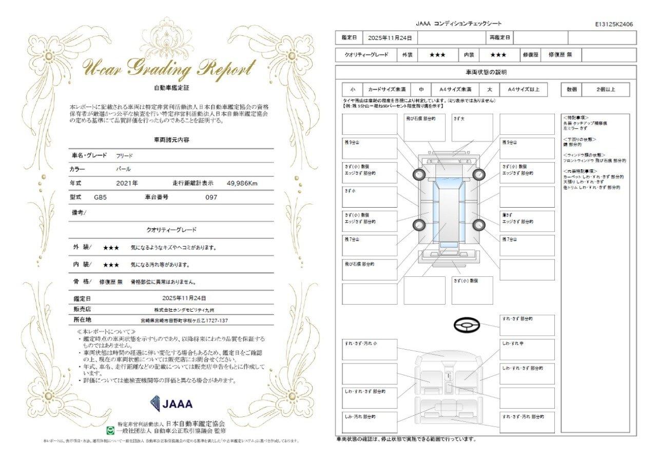当社では、すべての中古車に対して第三者機関による車両状態判定を実施しています。お客様に安心してご利用いただける品質の車両を提供いたします。 34