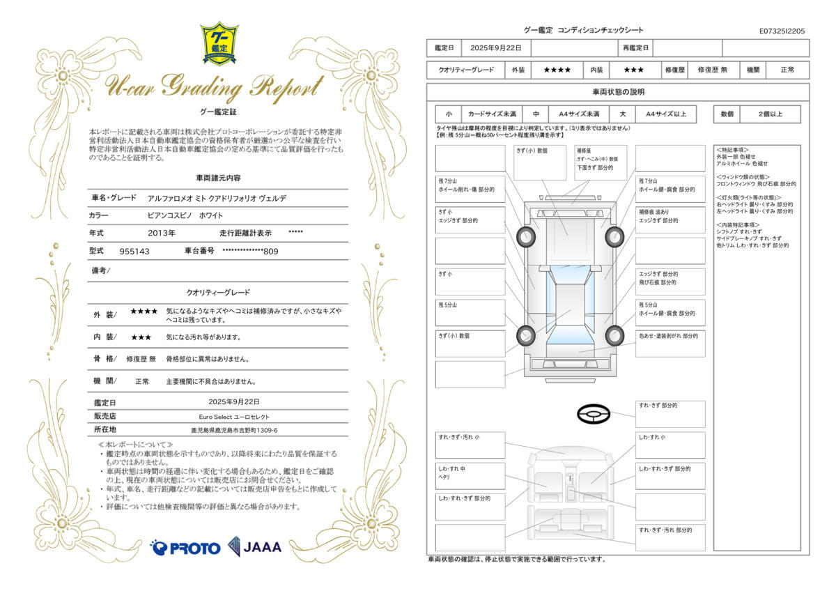 [保証付]:12ヶ月・走行無制限 上限10万円まで。対象部位89点。別途追加料金頂ければ上限・対象部位を増やすことができます |