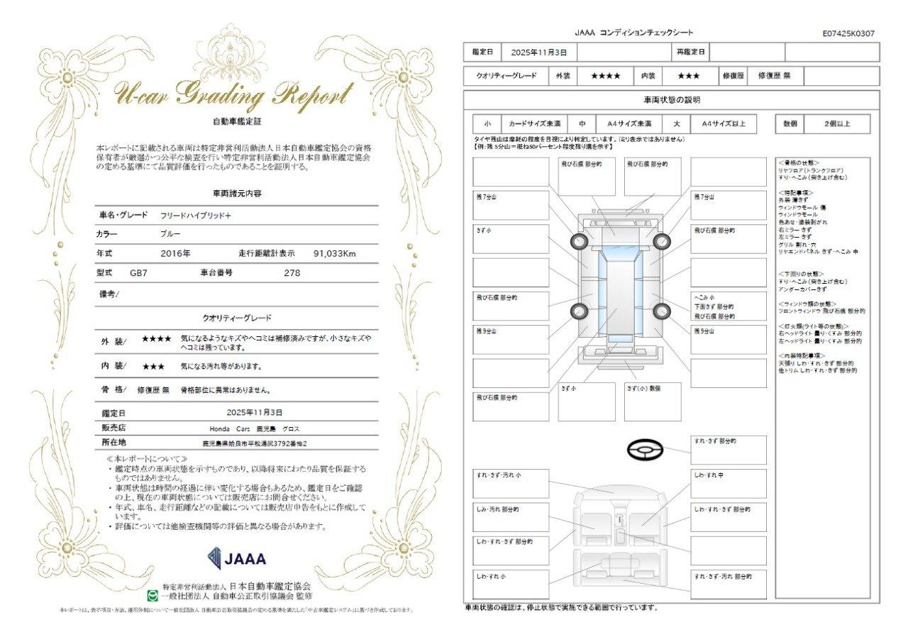 フリード+ハイブリッド ハイブリッドG メモリーナビ リアカメラ ETC 1101665A30251106W001 1