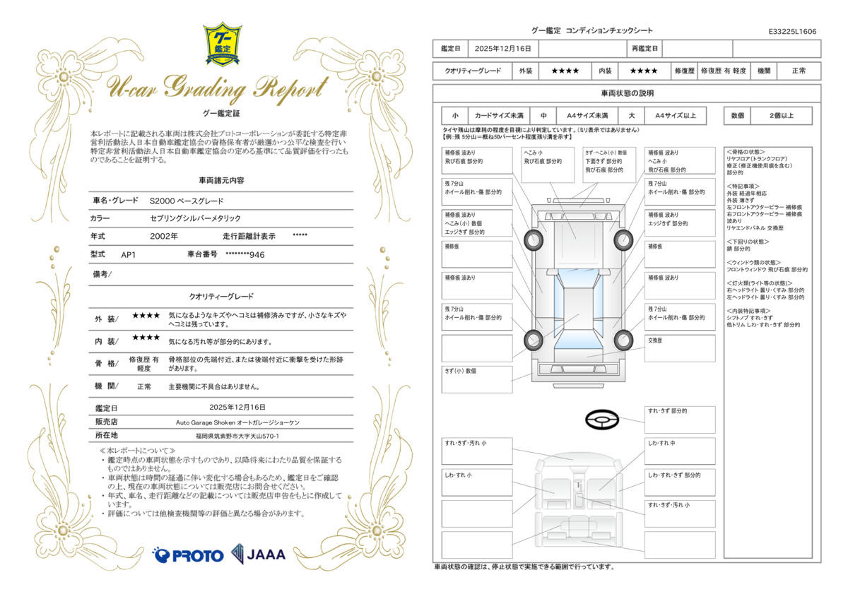 保証内容は新車購入時のディーラー保証同等(別途規定有)で、1年or2年or最長3年、走行距離無制限の有料保証です。保証期間内は全国の最寄の認証工場以上の整備工場で無料保証の対応をお受け頂くことが可能です。国産車、輸入車、改造車、修復歴車等規定がありますのでご確認下さい。