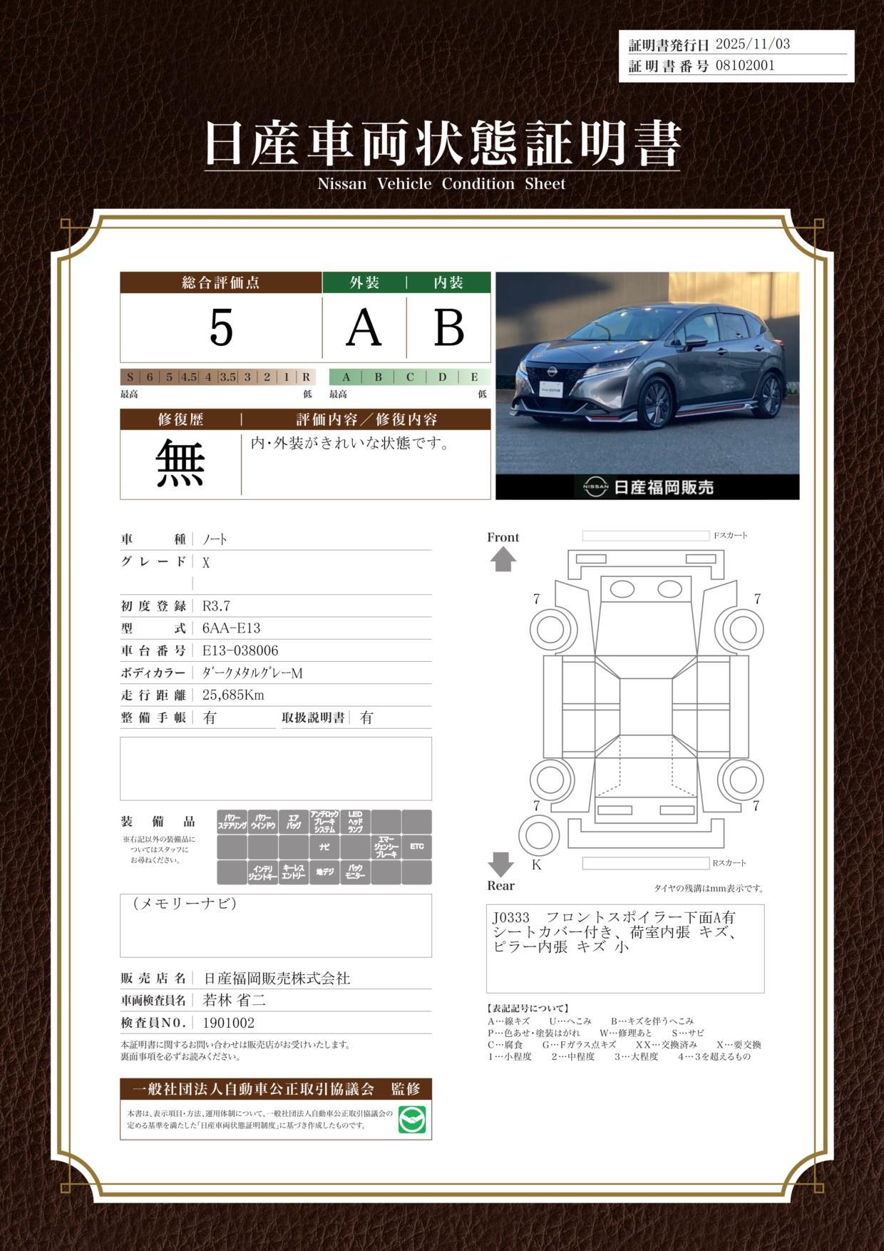 | 保証について | [保証付]:24ヶ月・走行無制限 |