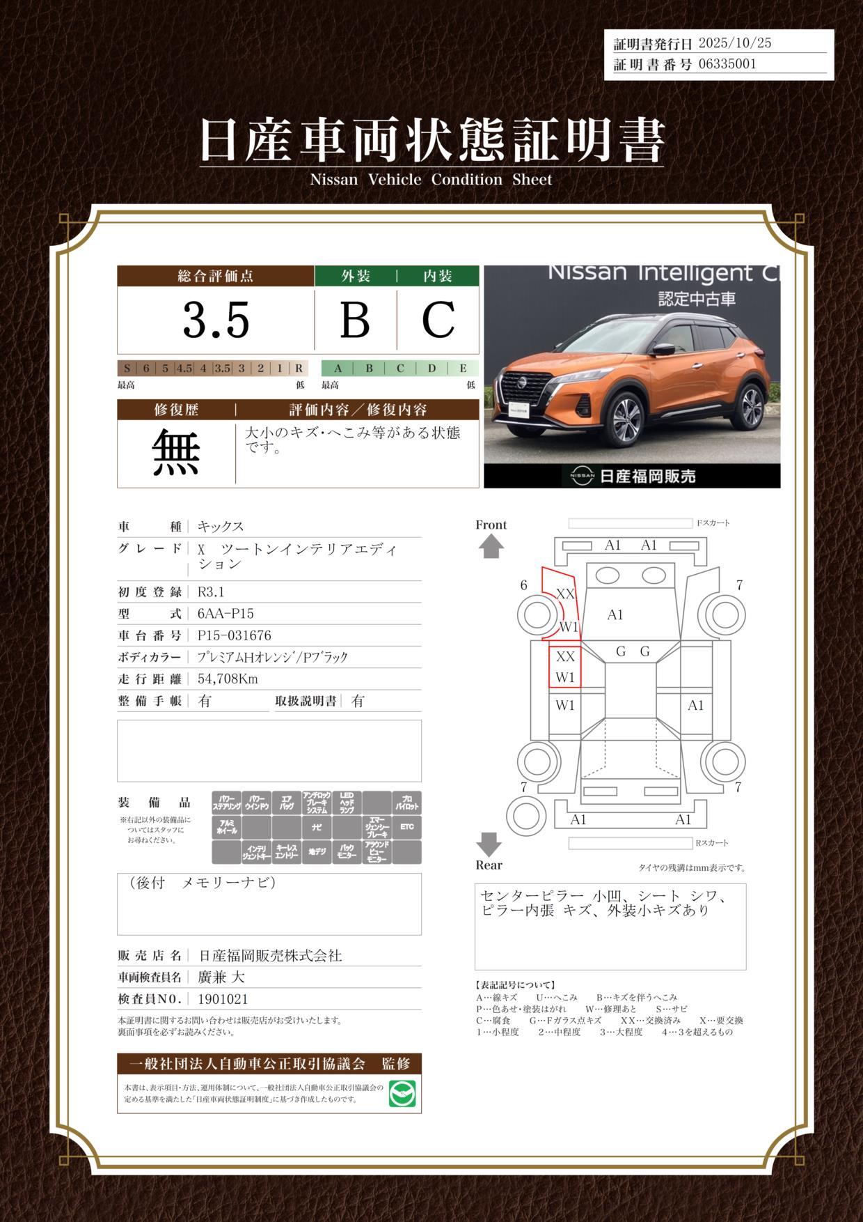 | 保証について | [保証付]:12ヶ月・走行無制限 |