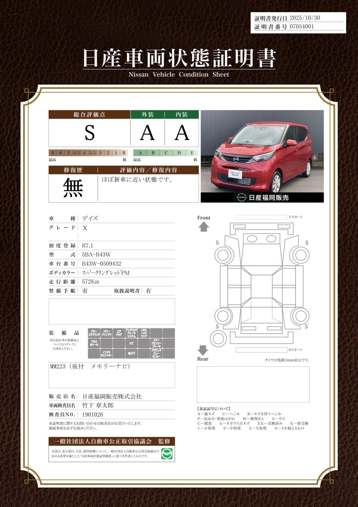 パーツ類を走行距離無制限で無料保証。1ヶ月または1,000kmの無料点検付き。信頼の日産サービス工場で、全国どこでも点検&修理ができるので、ご購入後も安心です 詳しくはお気軽にお問合せください!