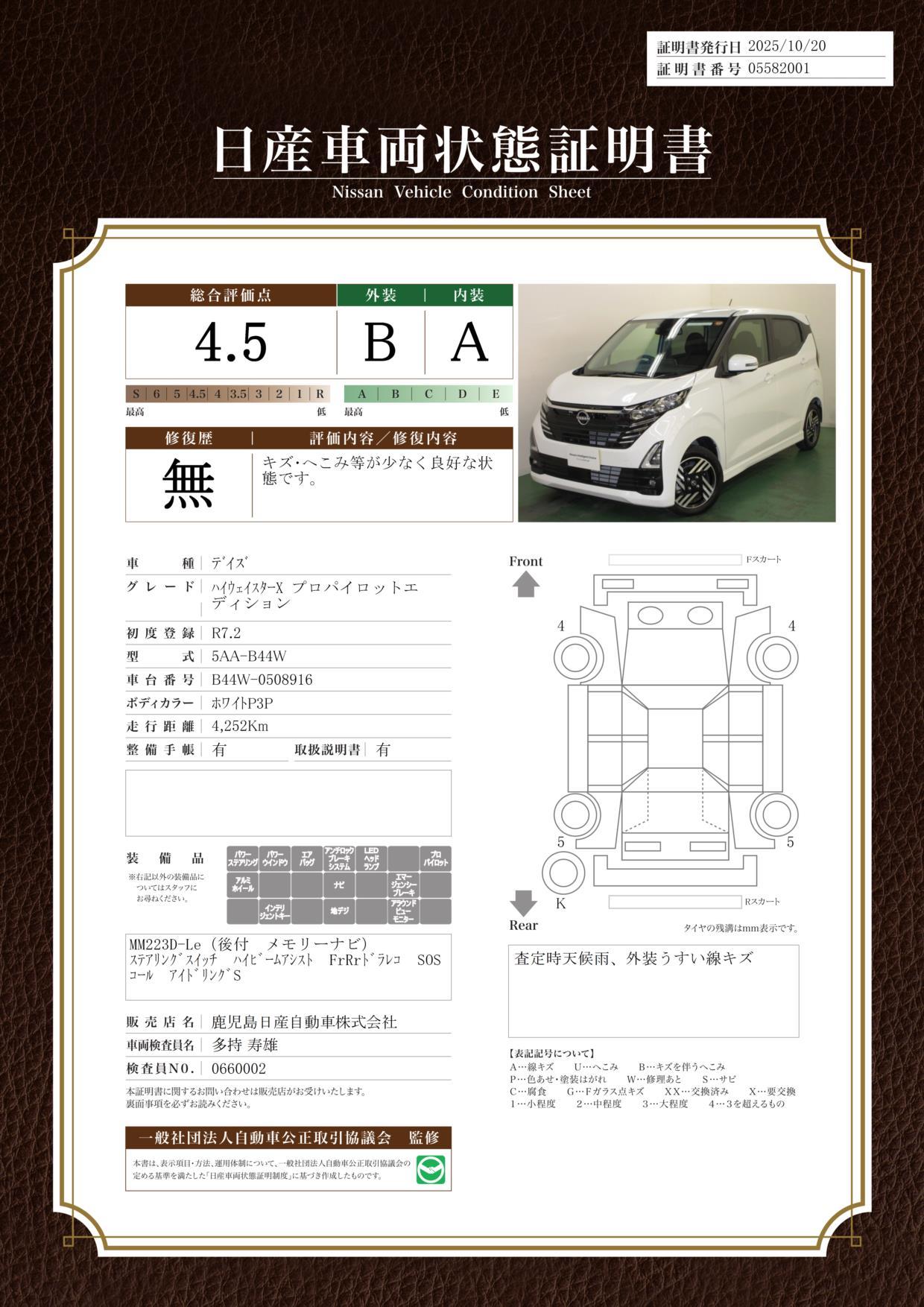 • また、修復歴・法定整備・保証の有無ならびに詳細内容につきましても、必ず各販売店にご確認いただきますようお願いいたします。