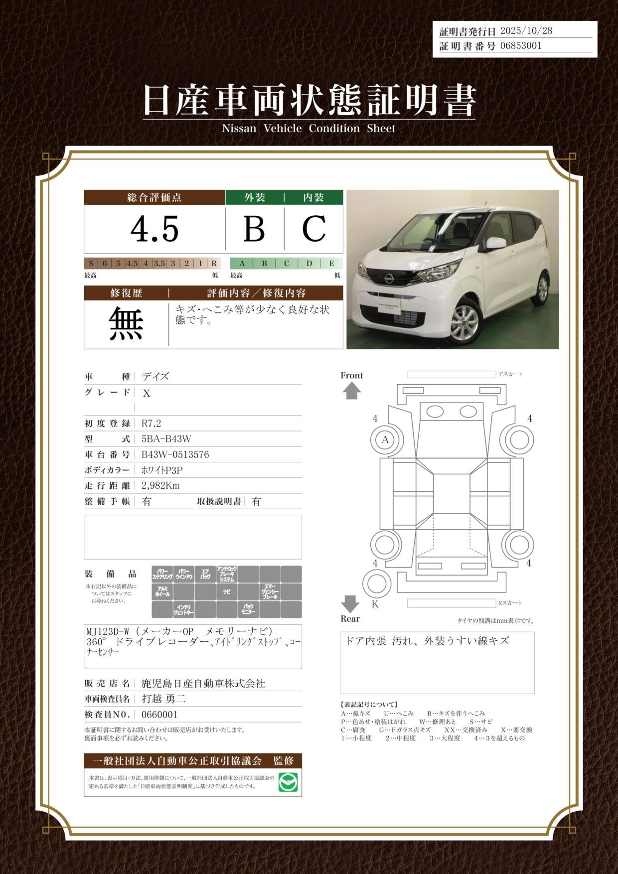 日産 デイズ 660 X 元展示・試乗車 踏み間違え防止 スマートキー イモビライザー バックカメラ レーンキープ アイドリングストップ ドライブレコーダー キーレス フルオートエアコン ナビTV WAB 運転席エアバック サイドエアバッグ