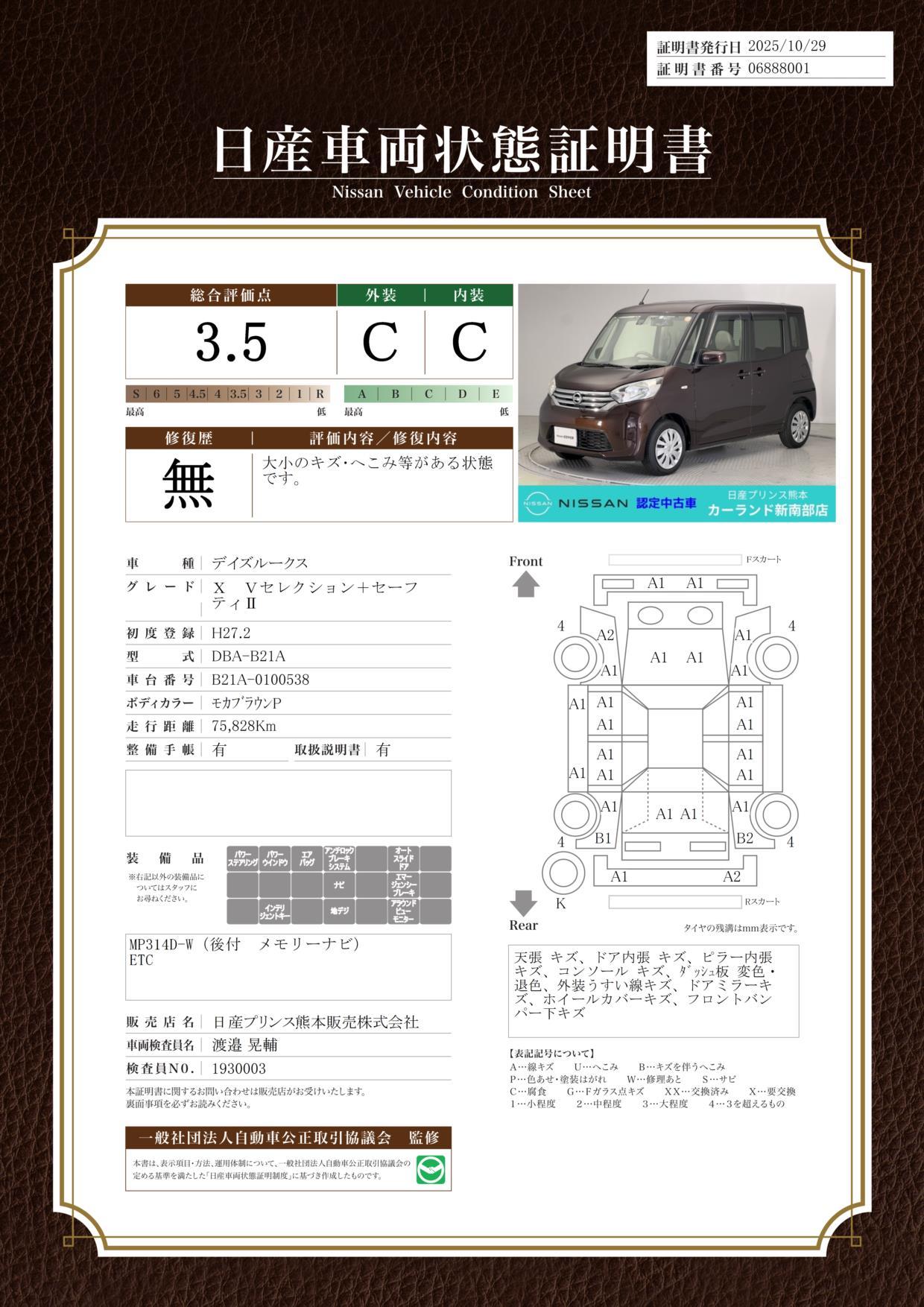 • また、修復歴・法定整備・保証の有無ならびに詳細内容につきましても、必ず各販売店にご確認いただきますようお願いいたします。