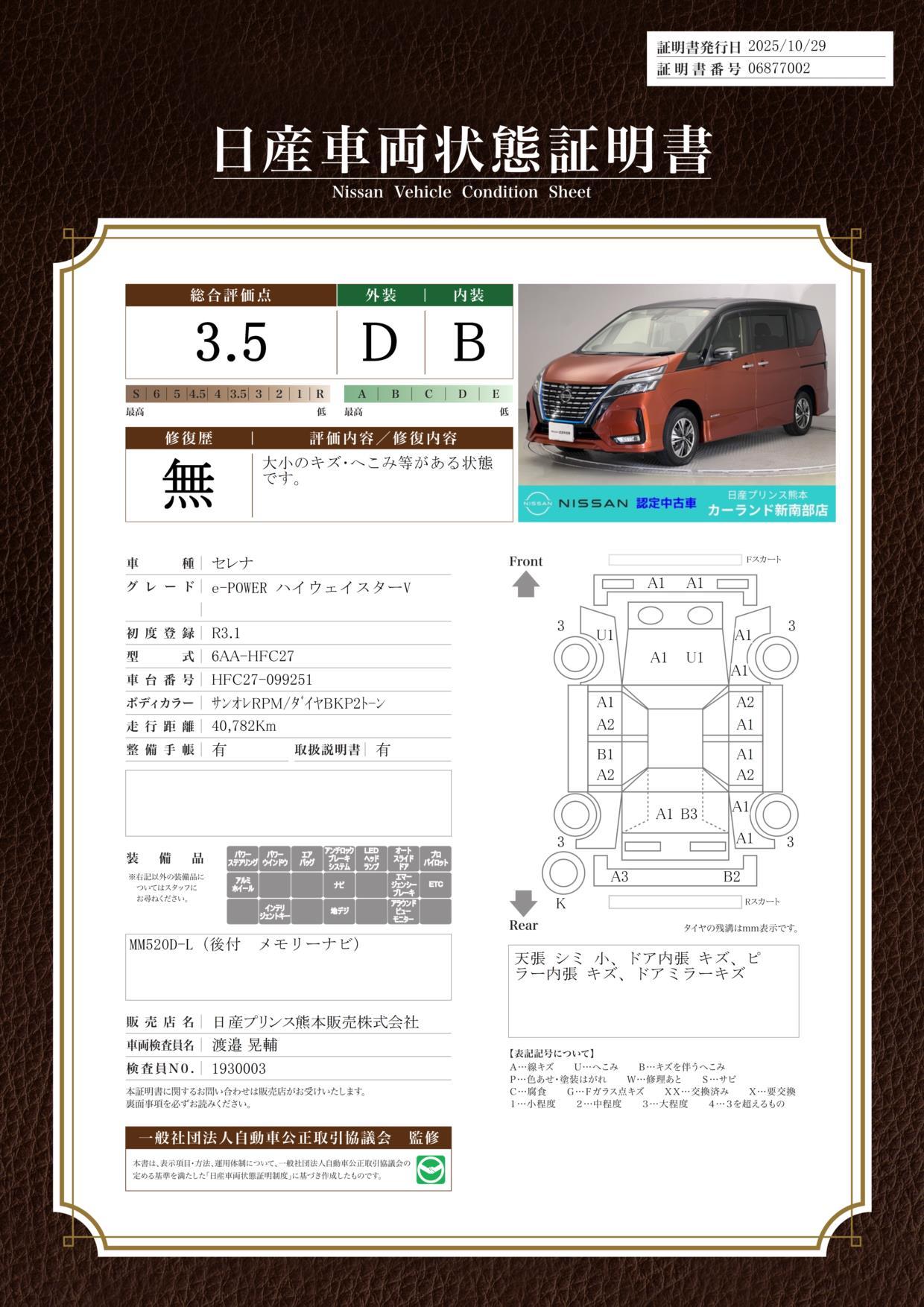 • また、修復歴・法定整備・保証の有無ならびに詳細内容につきましても、必ず各販売店にご確認いただきますようお願いいたします。