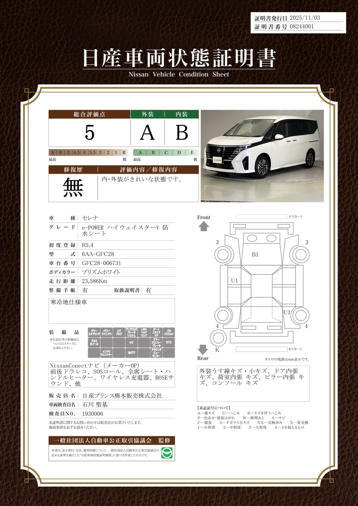 • また、修復歴・法定整備・保証の有無ならびに詳細内容につきましても、必ず各販売店にご確認いただきますようお願いいたします。