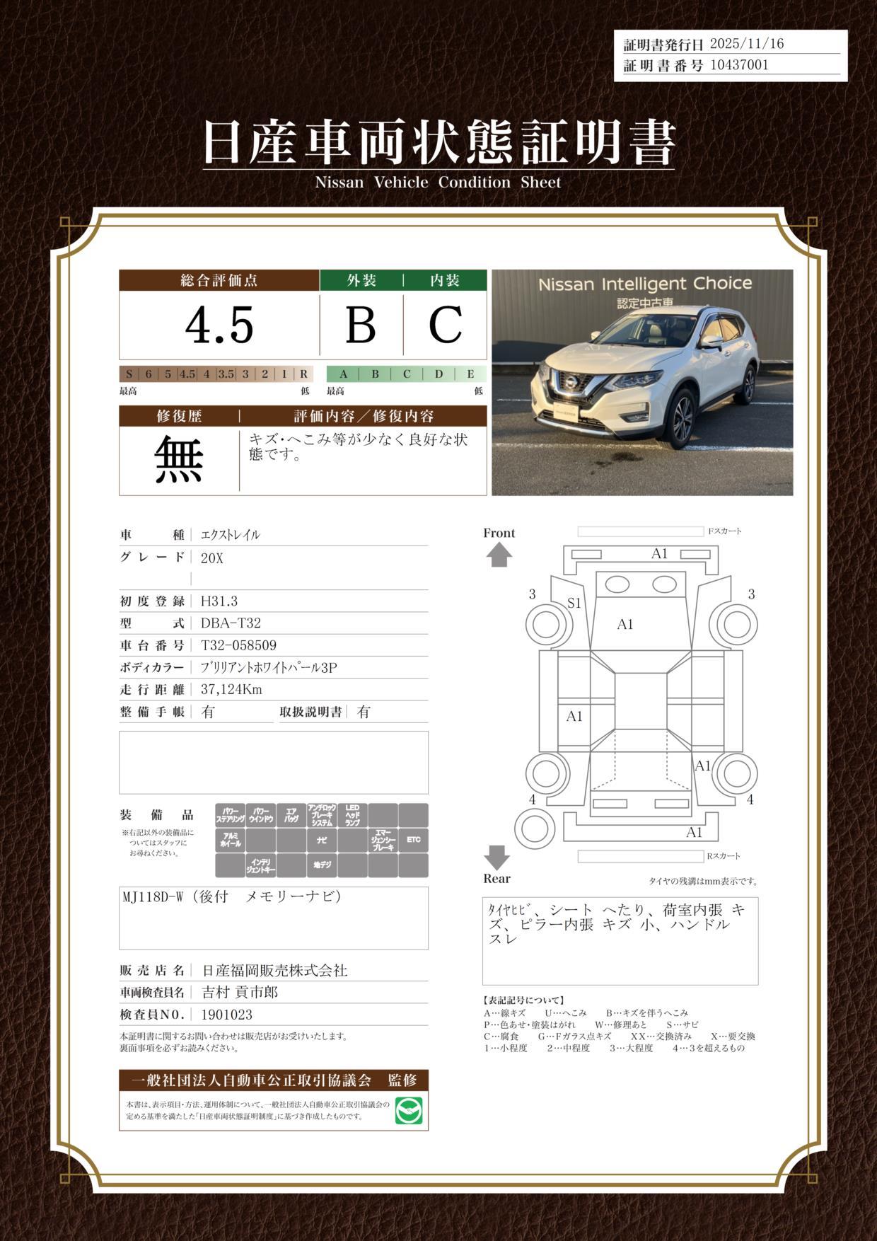 Get−U管理番号:1901−89G−12556 ニッサン エクストレイル 20X ワンオーナー メモリーナビフルオートエ