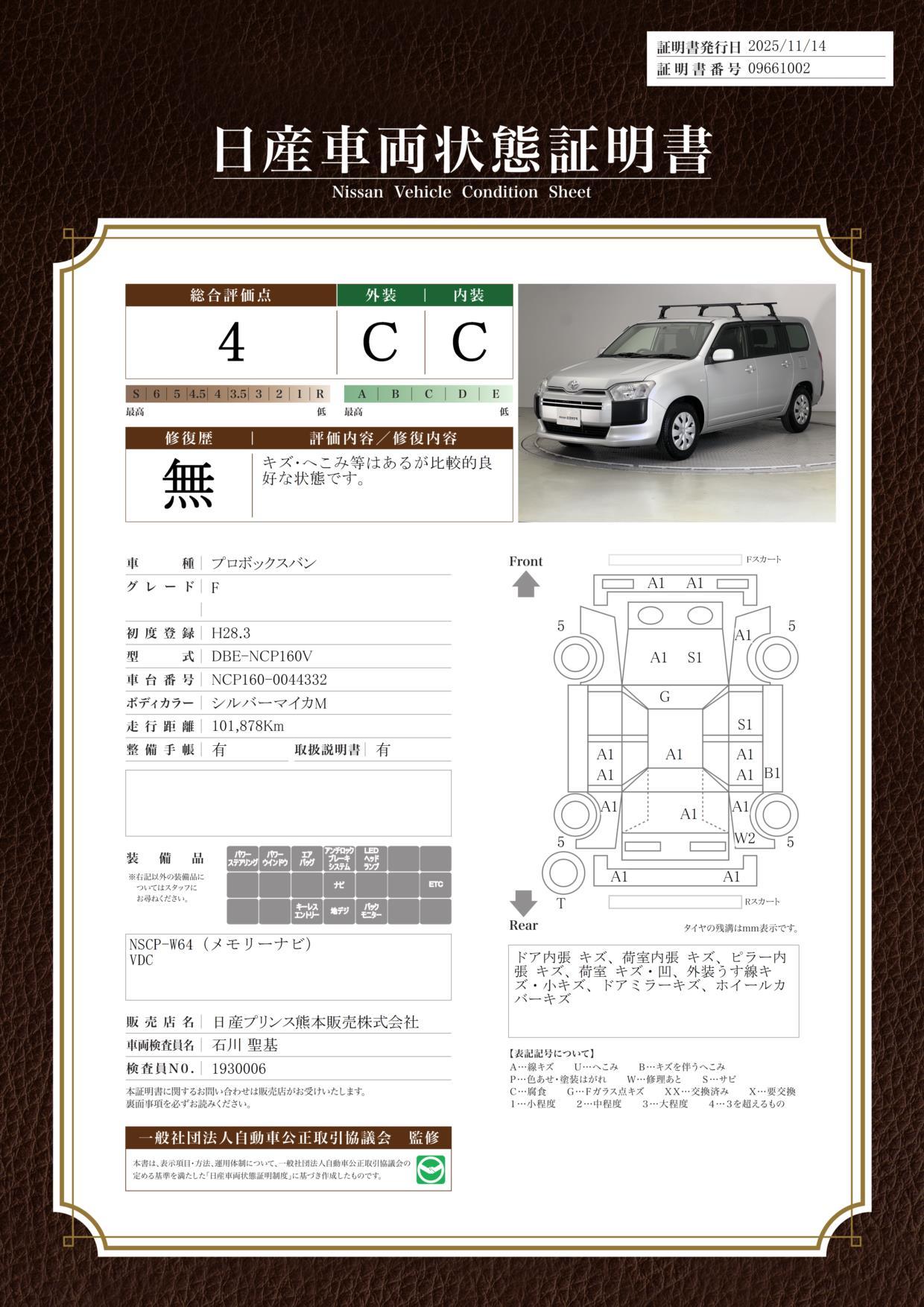 修復歴 なし 車体色 シルバーマイカメタリック