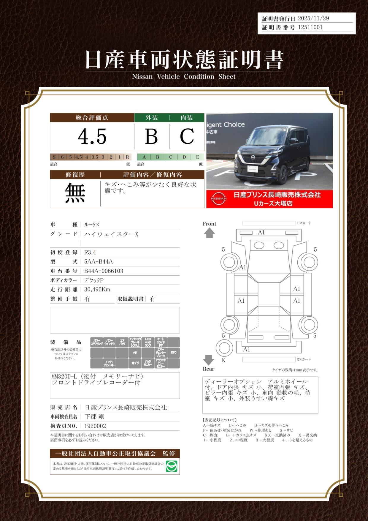 ルークス 660 ハイウェイスターX 純正ナビ ドラレコ 0100116A20251128E003 2